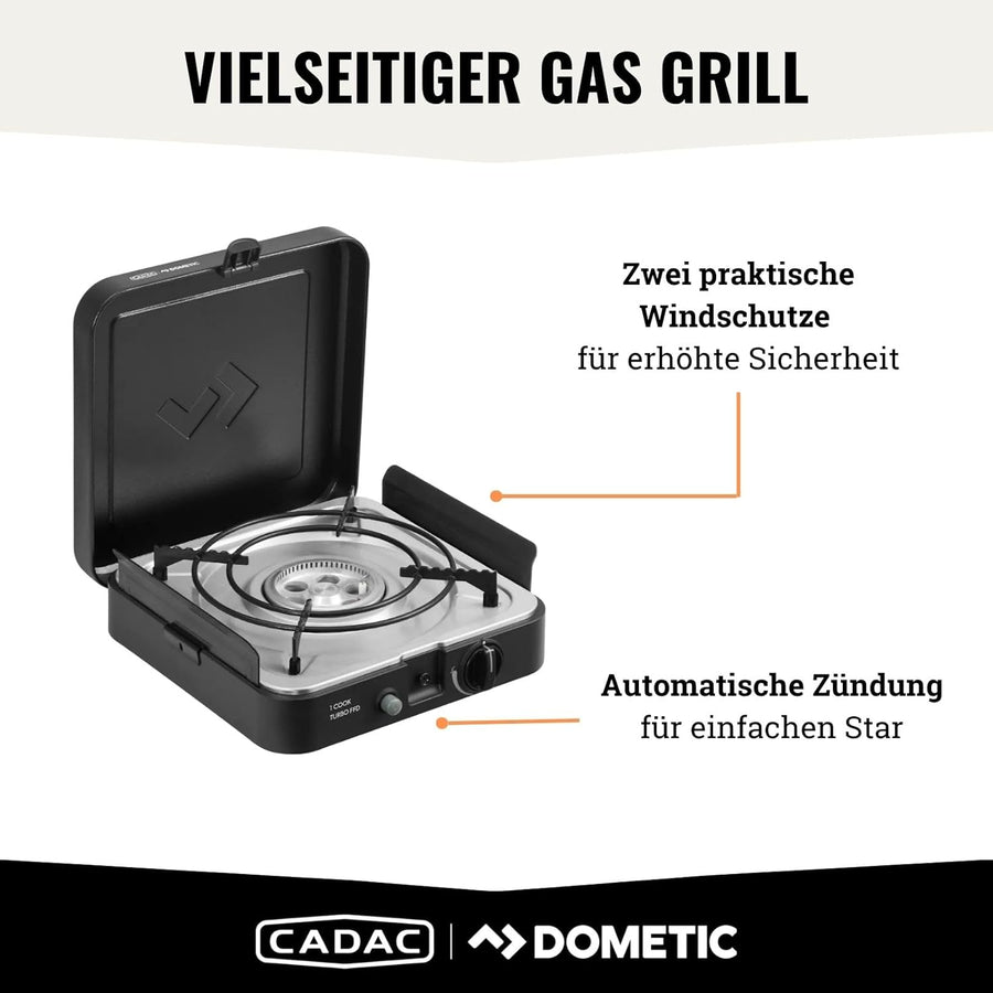 - 1 COOK TURBO: Kompakter und tragbarer 1-Flammen-Gaskocher mit leistungsstarkem Turbobrenner und FFD-Sicherheitssystem – ideal für Campingausflüge und Kochen im Freien mit maximaler Leistung und Komfort!