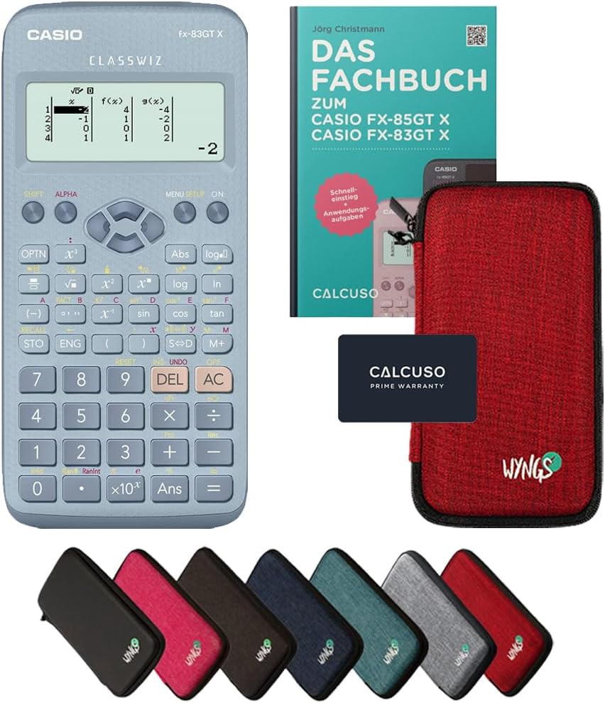 - Bundleinhalt : Casio FX-83GT X, WYNGS Schutztasche, Fachbuch zum Casio Fx-83GT X, Erweiterte Garantie
