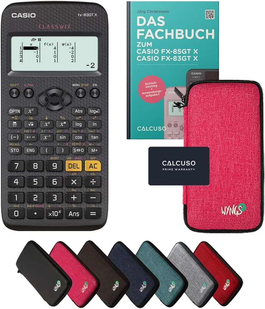 • Bundleinhalt : Casio FX-83GT X, WYNGS Schutztasche, Fachbuch zum Casio Fx-83GT X, Erweiterte Garantie