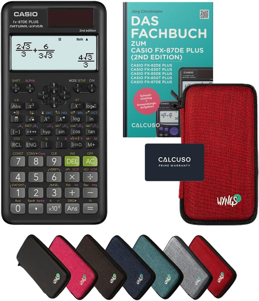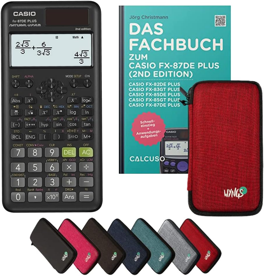 - Bundleinhalt : Casio FX-87DE Plus II, WYNGS Schutztasche, Fachbuch zum Casio FX-87DE Plus II, Erweiterte Garantie