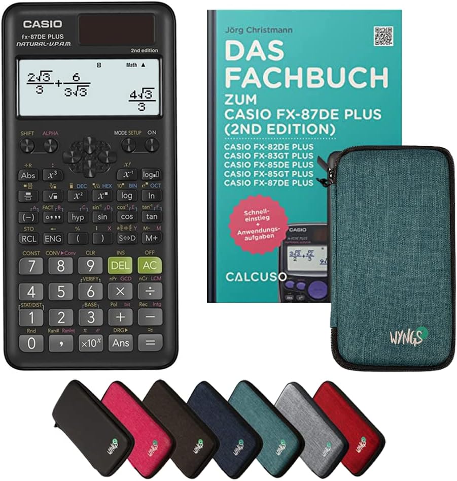 • Bundleinhalt : Casio FX-87DE Plus II, WYNGS Schutztasche, Fachbuch zum Casio FX-87DE Plus II, Erweiterte Garantie