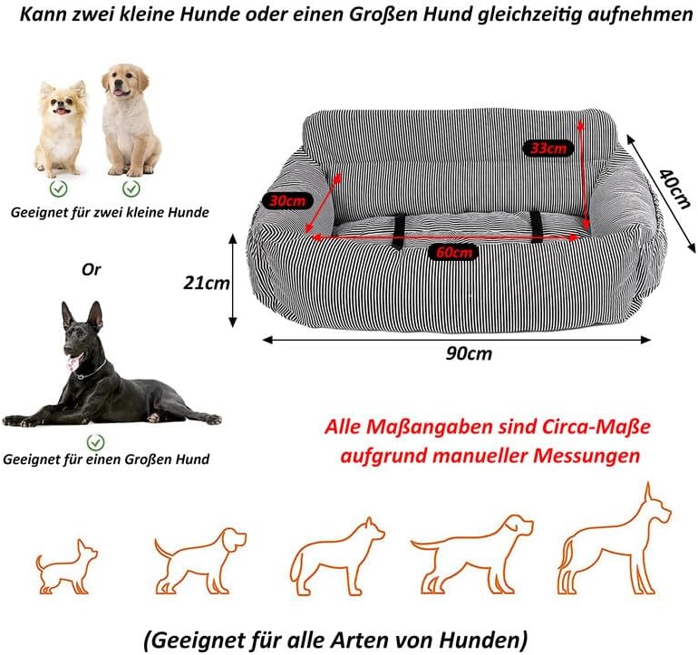 - 【Grösse des Hunde Autositz】Die Grösse des hundesitz auto rückbank beträgt: 90cm x 40cm x 21cm, wodurch kleine mittel und gross Hunde oder Katzen mit einem Gewicht von bis zu 30 Pfund (wie Bulldoggen, Puller) problemlos untergebracht werden
