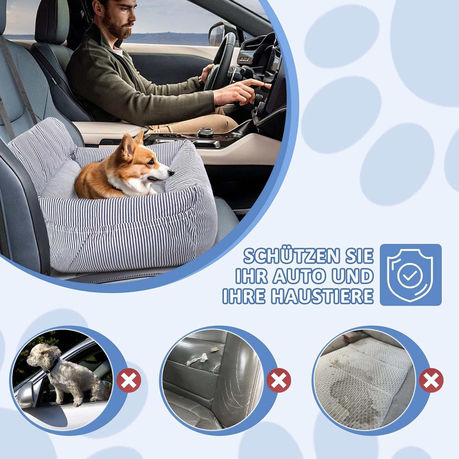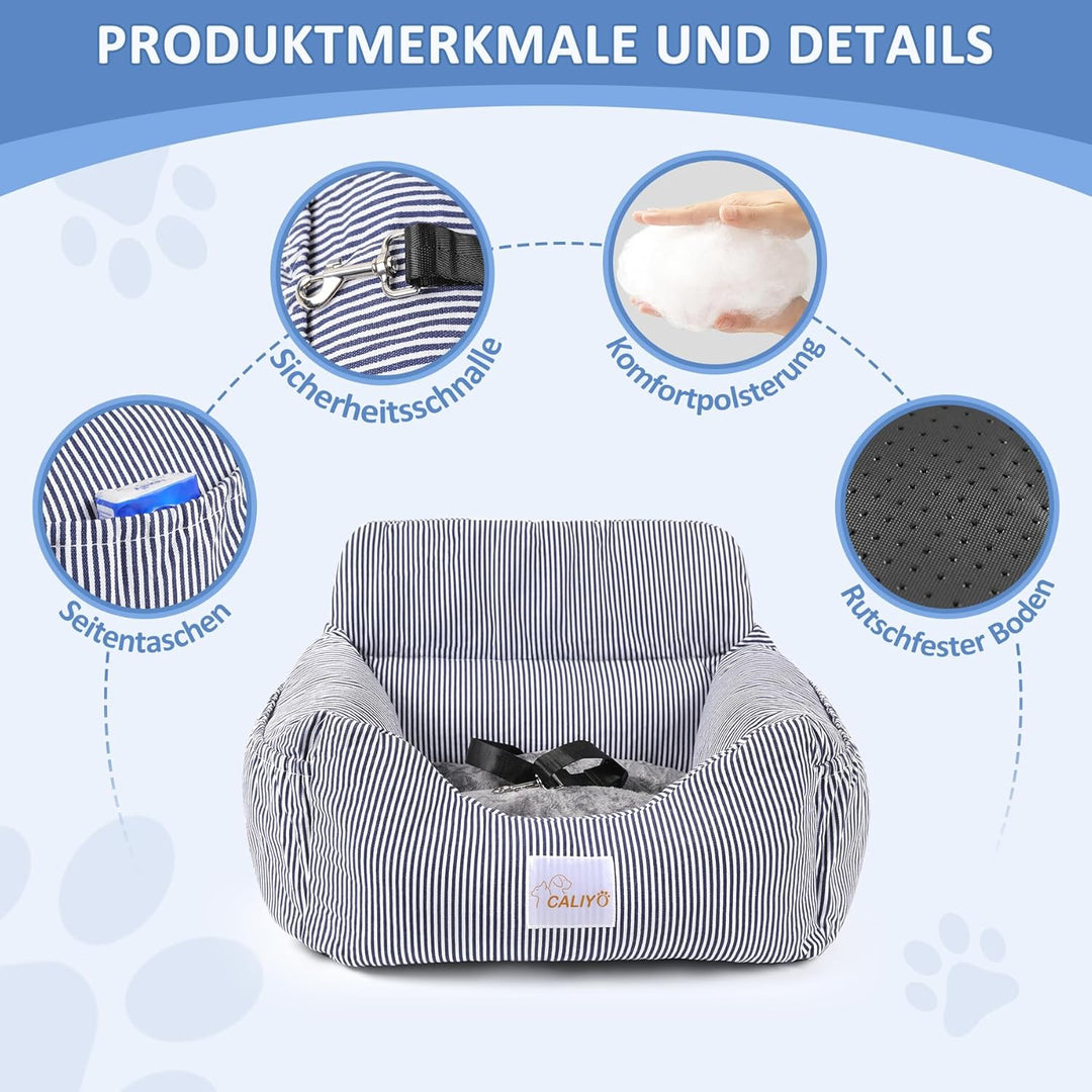 - 【Hochleistung für Hunde Autositz】Der autositz hund ist mit zwei Sicherheitsgurten ausgestattet, die sicher am Autositz befestigt werden können. Es gibt eine Sitzgurtschnalle am hundesitz auto rückbank, das kann den Hund von zufälligem Springen