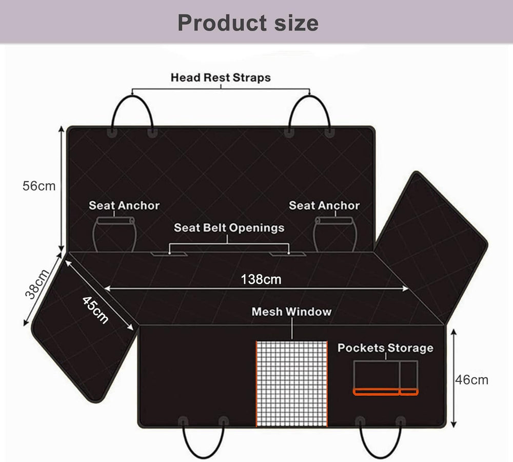 - 🐕【Grösse】 hundedecke auto kofferraum 138 cm Länge, 45 cm Breite und 56 cm Höhe, geeignet und bequem für grosse Haustiere. hund auto rückbank Passend für die meisten Arten von Autos. Hund Autositz kann in den Rückbanksitzen verwendet werden.