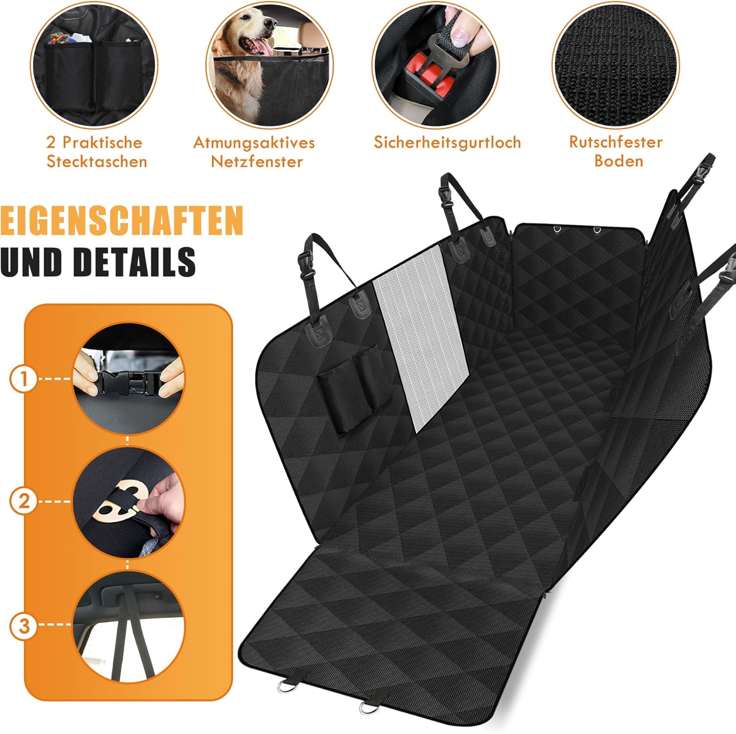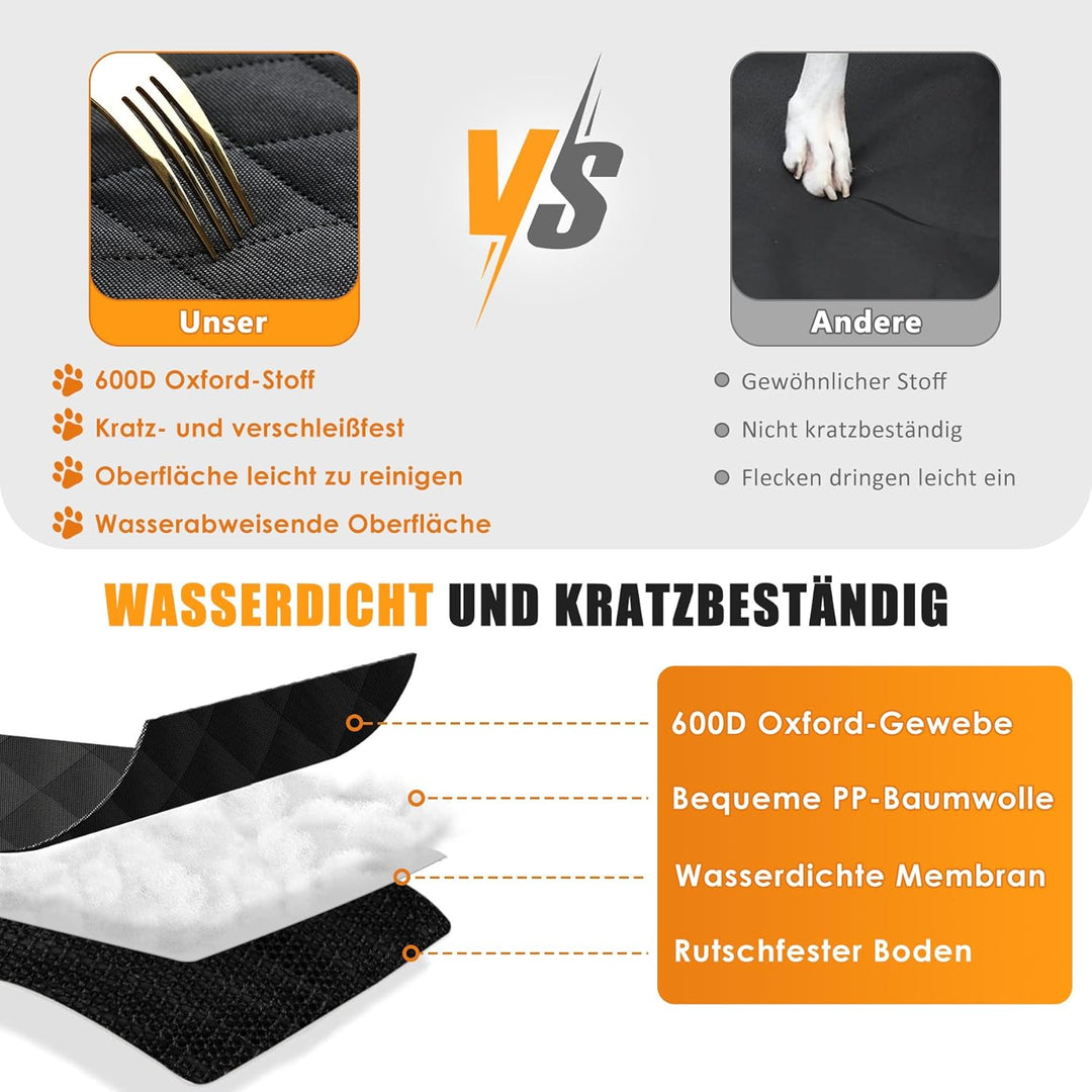 - 🐕【Gute Qualität und Multi-Funktion】 Rutschfeste Board kombiniert mit Sicherheitsgurt, um diese kofferraum schutzmatte hund wirklich robust zu machen. Hergestellt aus hochwertigem 600D Oxford, kratzfest, Schutz gegen Tropfwasser und Spritzwasser,
