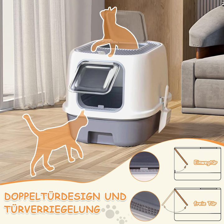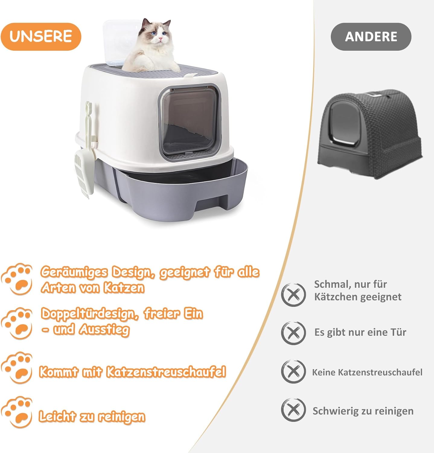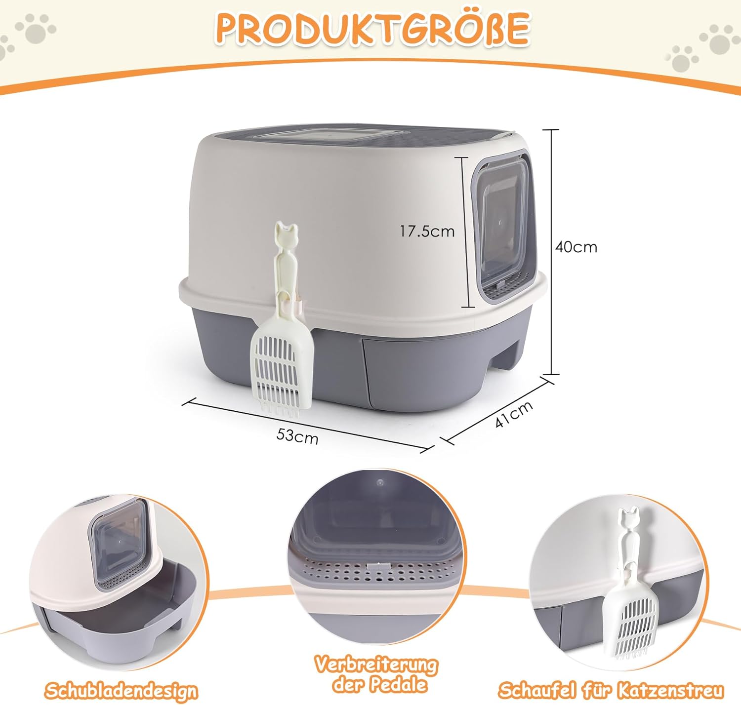 - [Lieferinhalt] 1 x Katzenklo Geschlossen; 1 x Katzenklo Matte; 1 x Katzenklo Schaufel