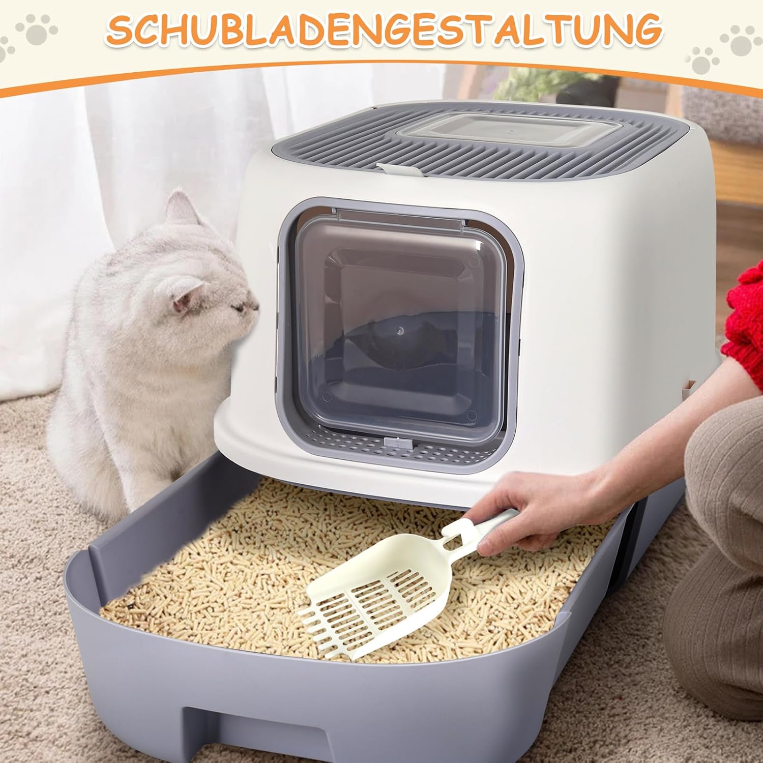 - [Leicht zu Reinigen] Die katzenklo xxl verfügt über eine ausziehbare Schublade, die leicht geleert und mit Katzenfutter gefüllt werden kann. Die mitgelieferte Katzenklo Schaufel hilft beim Aufsammeln von Abfall.
