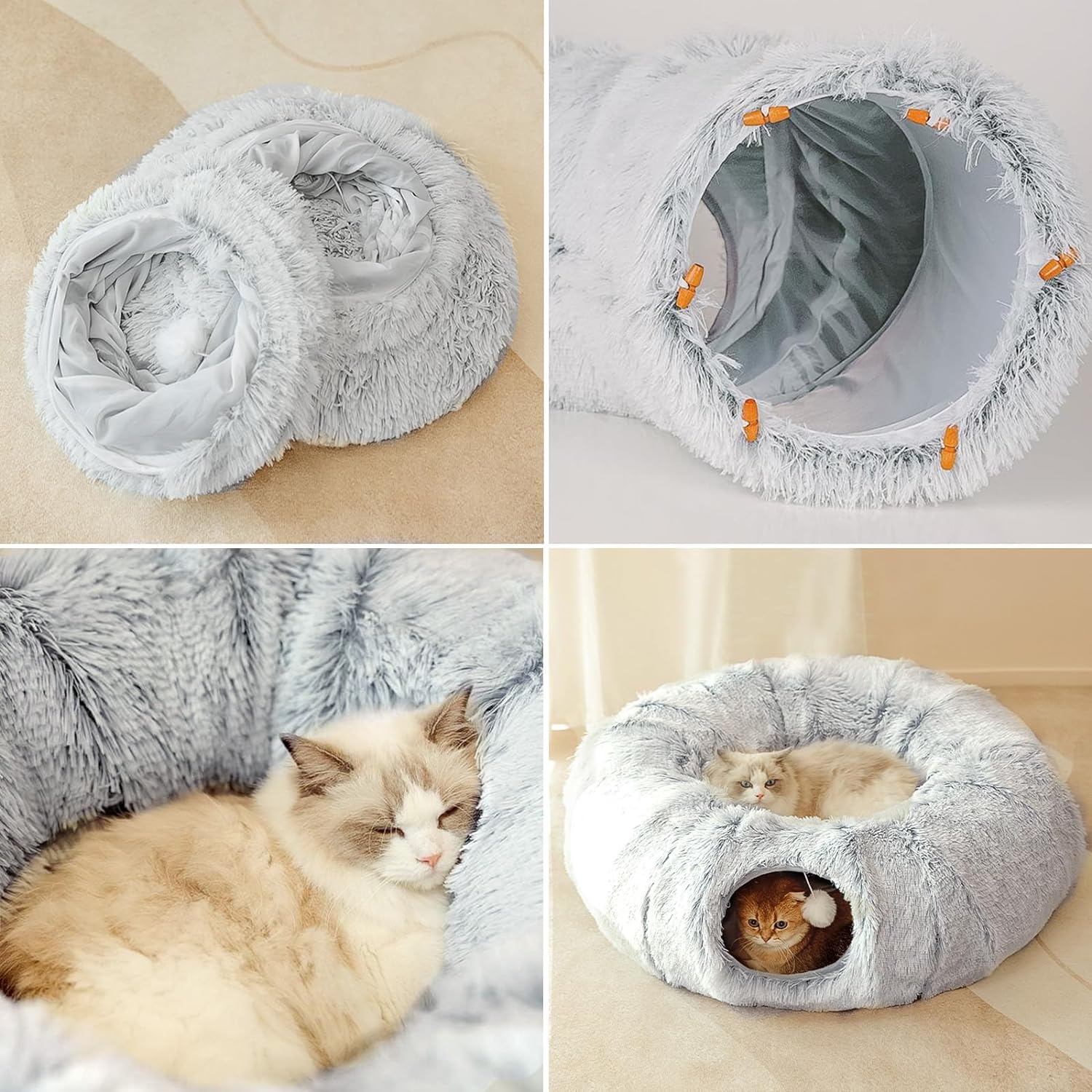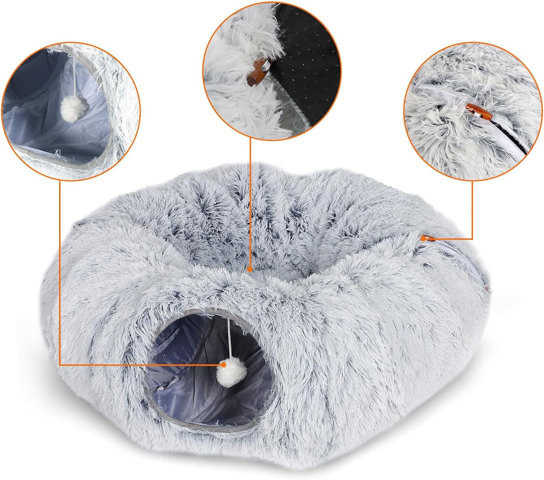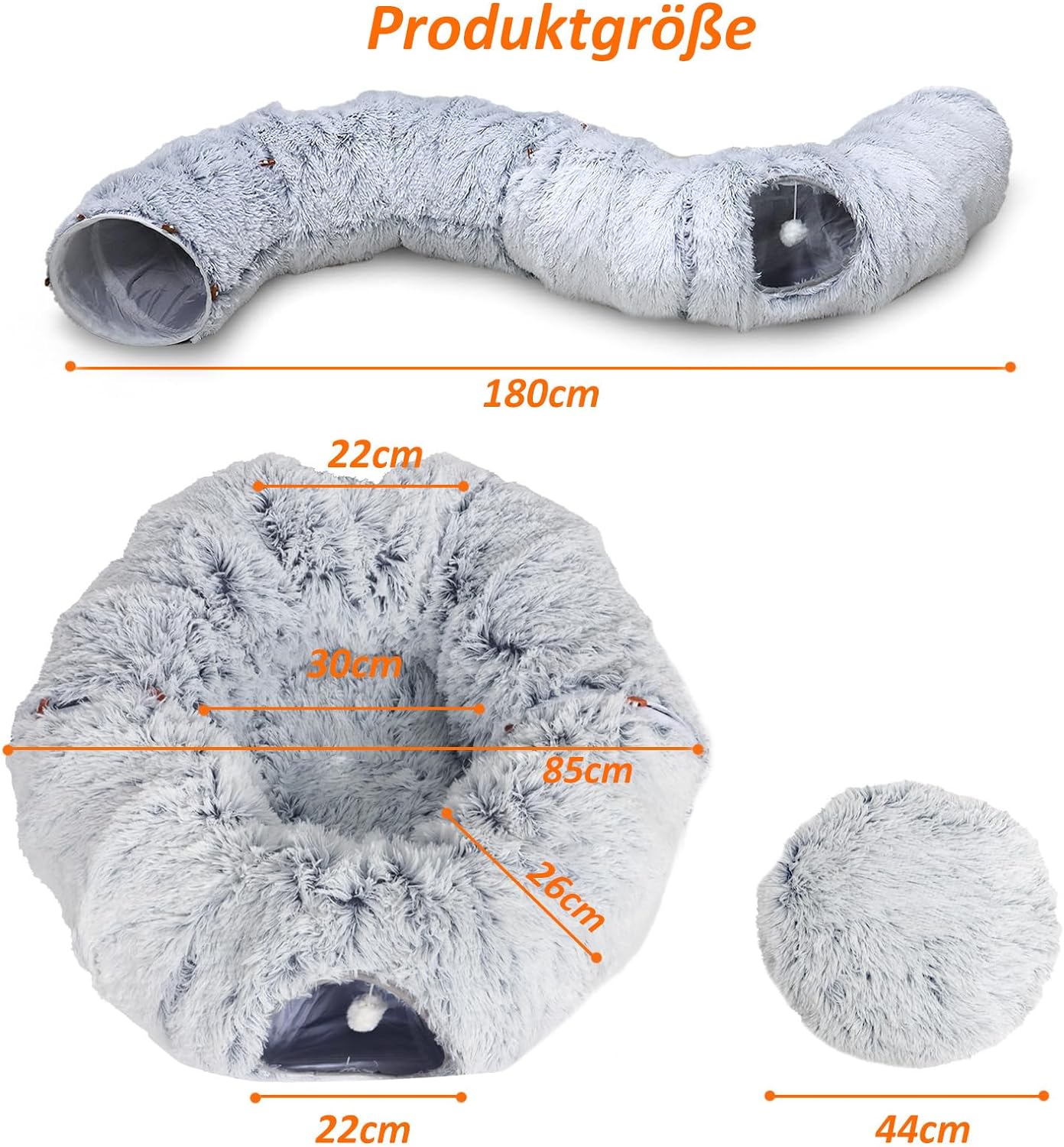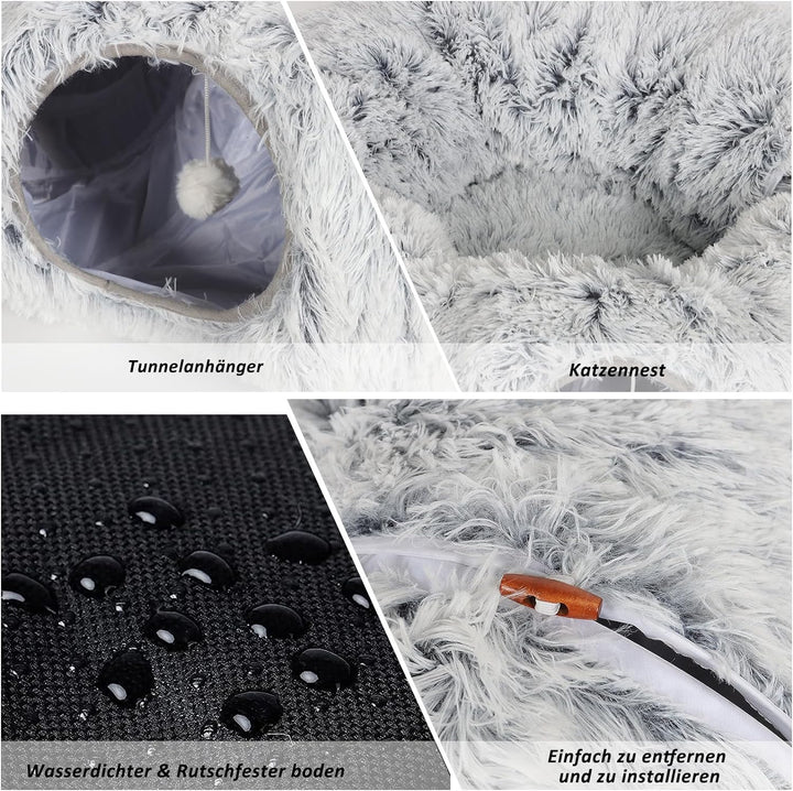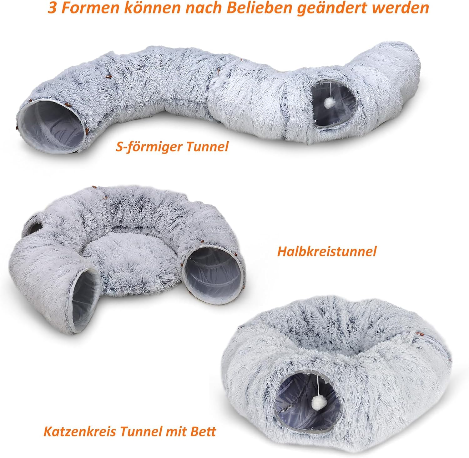 - [Leicht zu Reinigen]: Das katzenbett und der tunnel sind leicht zu reinigen und können bei bedarf auseinandergenommen werden, um platz zu sparen.