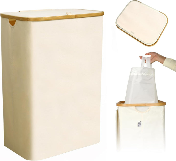 - 【Mit Herausnehmbare Innentasche】: Wäschesammler Ausgestattet mit einer herausnehmbaren inneren Netztasche können Sie die Kleidung herausnehmen, ohne den gesamten Korb zu bewegen. Der abnehmbare Netzbeutel ist maschinenwaschbar, was Ihnen die
