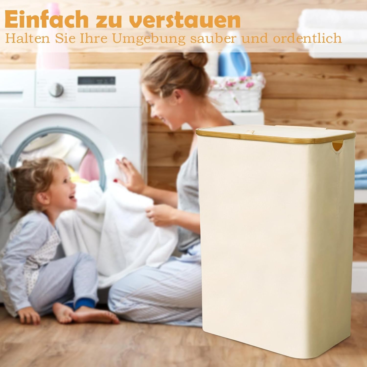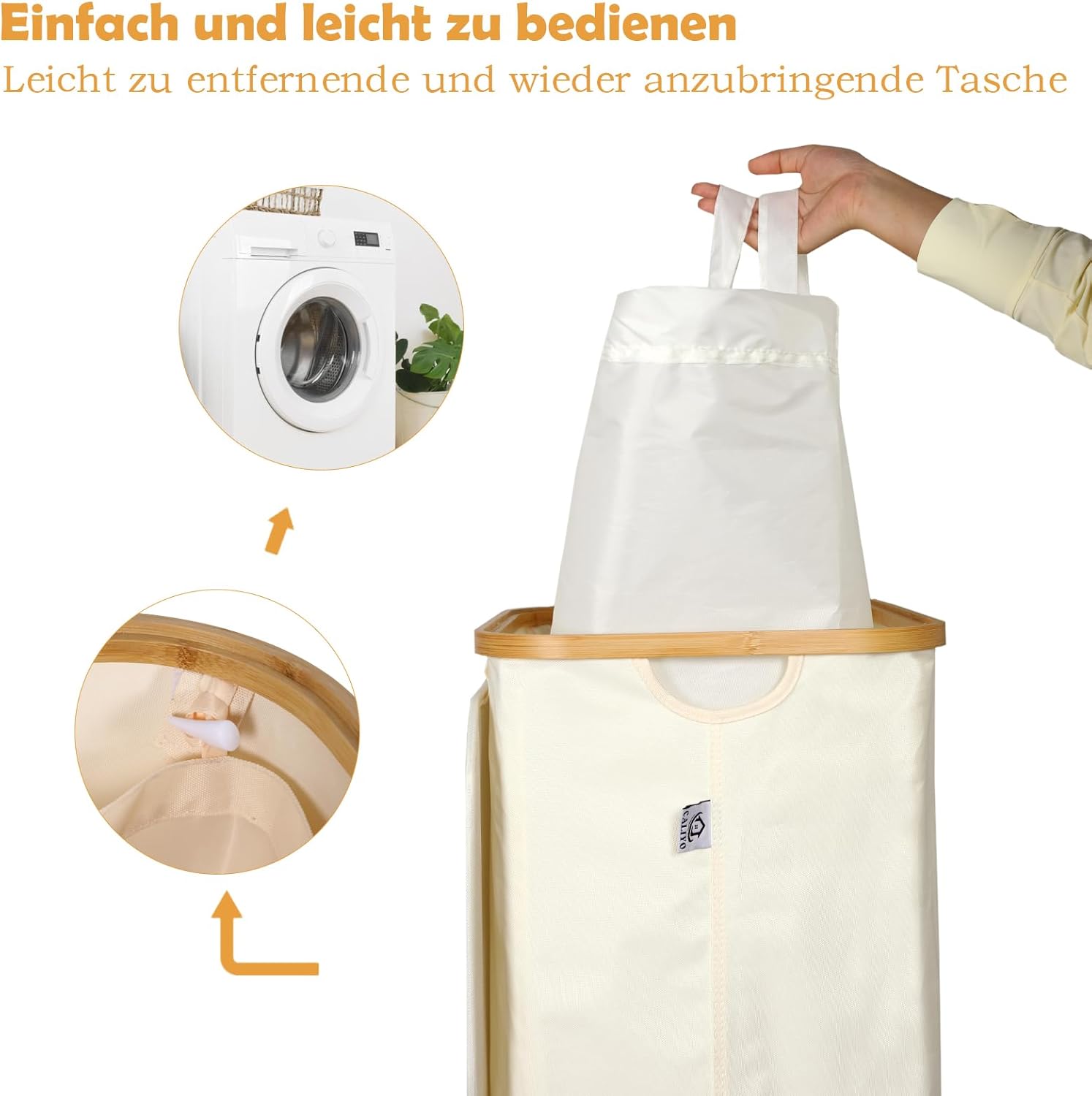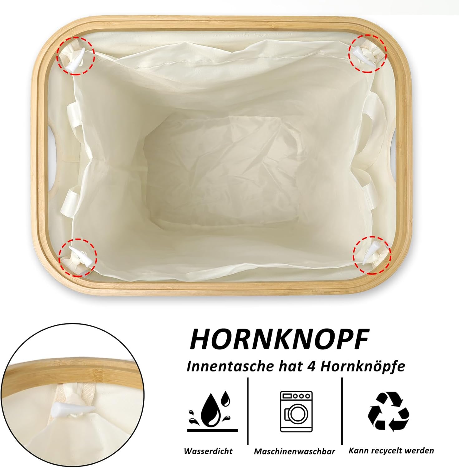 - 【Langlebiges und robustes Material】Der Waschkorb besteht aus sehr hochwertigem Stoff, besteht aus dickerem Stoff als andere Marken und reisst oder beschädigt nach längerem Gebrauch nicht. Der Bambusgriff ist karbonisiert, um ihn glatt zu machen,