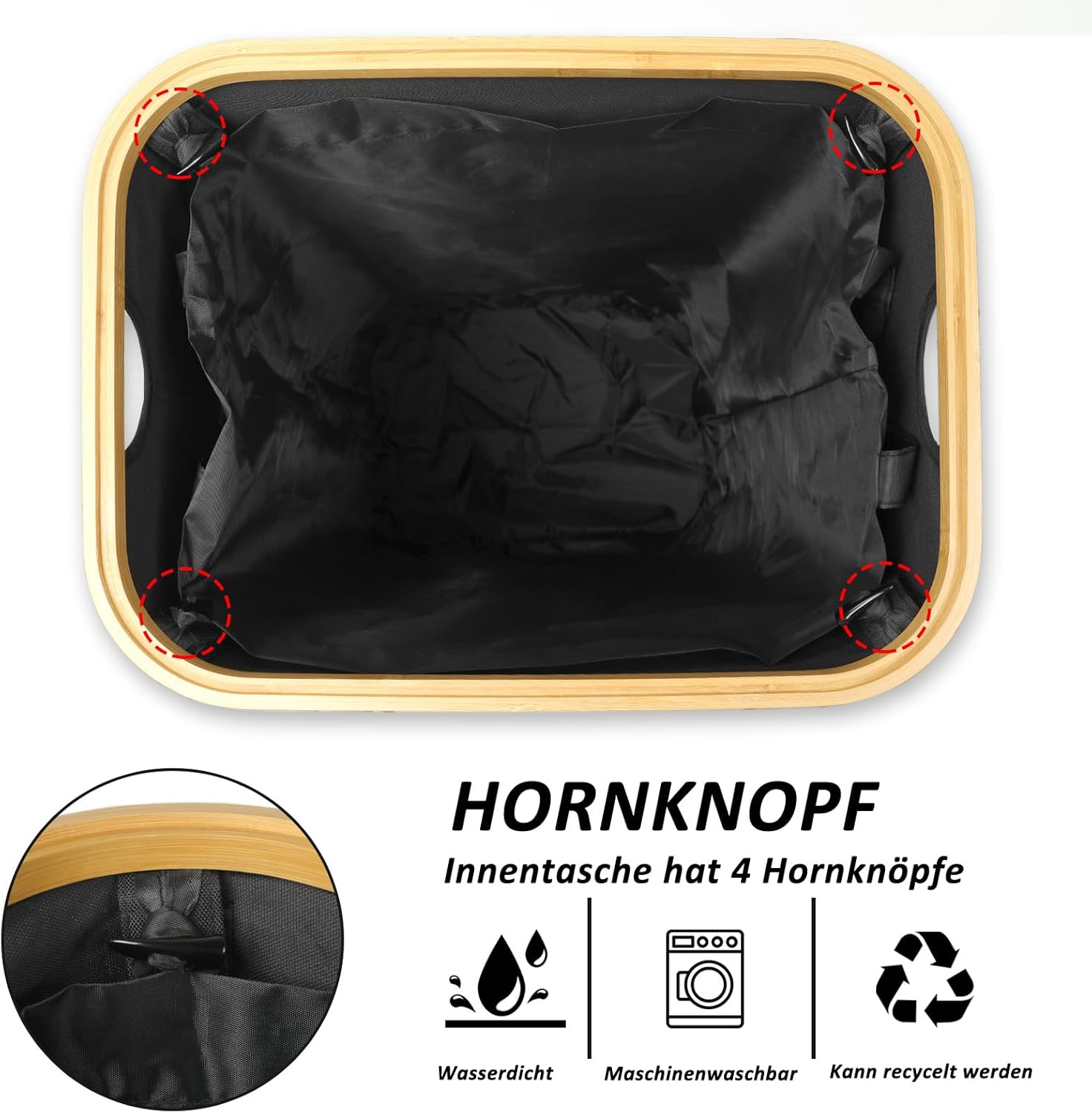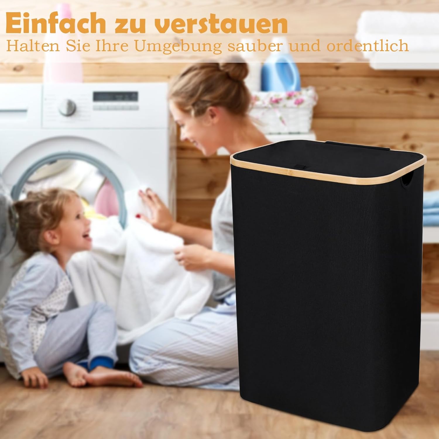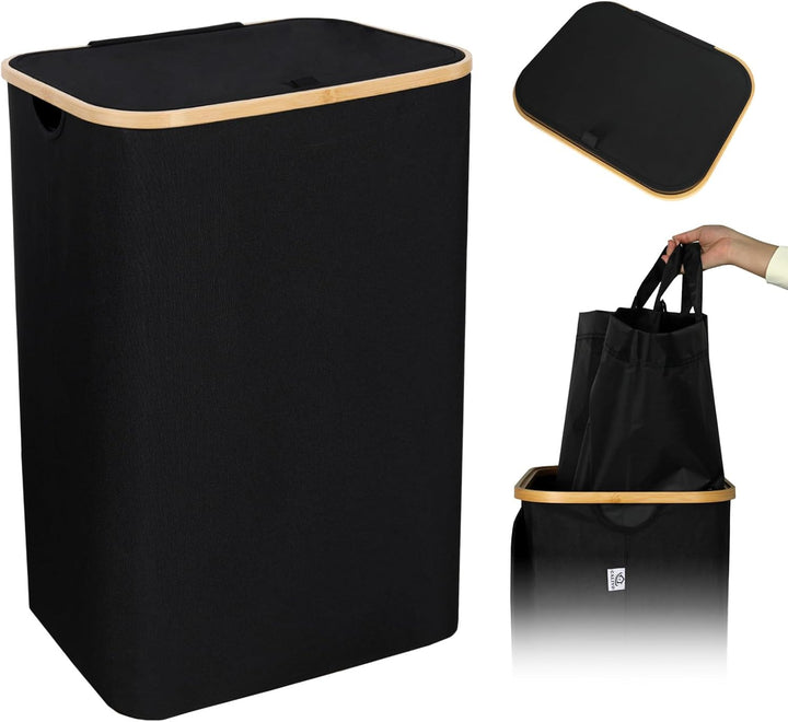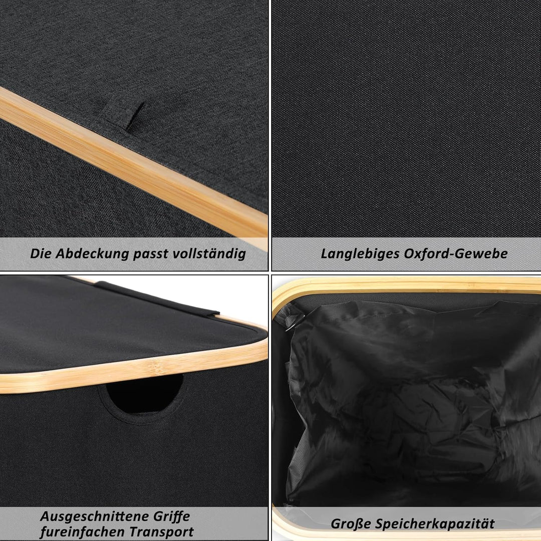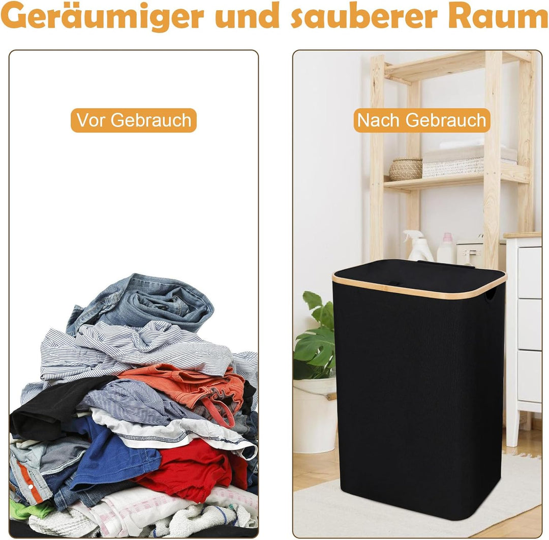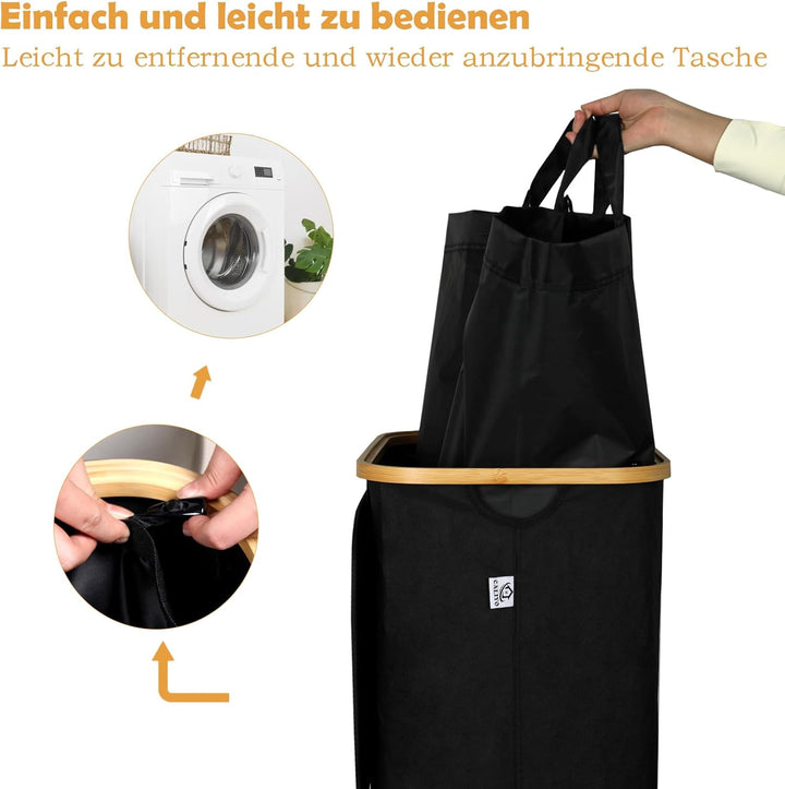 - 【Langlebiges und robustes Material】Der Waschkorb besteht aus sehr hochwertigem Stoff, besteht aus dickerem Stoff als andere Marken und reisst oder beschädigt nach längerem Gebrauch nicht. Der Bambusgriff ist karbonisiert, um ihn glatt zu machen,