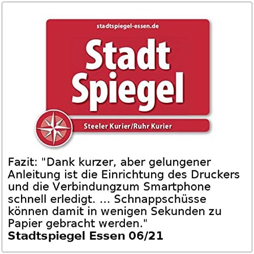 - Bluetooth 4.0 für kabellose Verbindung, Reichweite: bis zu 10 m • Bis zu 10 Jahre haltbare Ausdrucke • Integrierter Li-Ion-Akku mit 1.000 mAh für bis zu 40 m oder ca. 600 Fotos Ausdruck, lädt per USB (Netzteil bitte dazu bestellen)