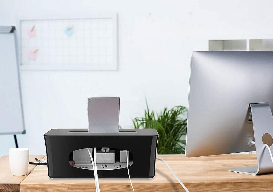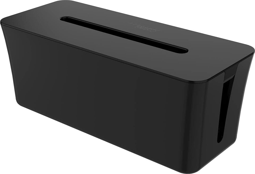 - Ideal zum Verstauen von Steckdosenleiste, Netzteilen und Kabeln auf Schreibtisch, Kommode, TV-Board u.v.m. • Abnehmbarer Deckel mit Ladesteckplatz für Mobilgeräte • Material: pflegeleichter Kunststoff