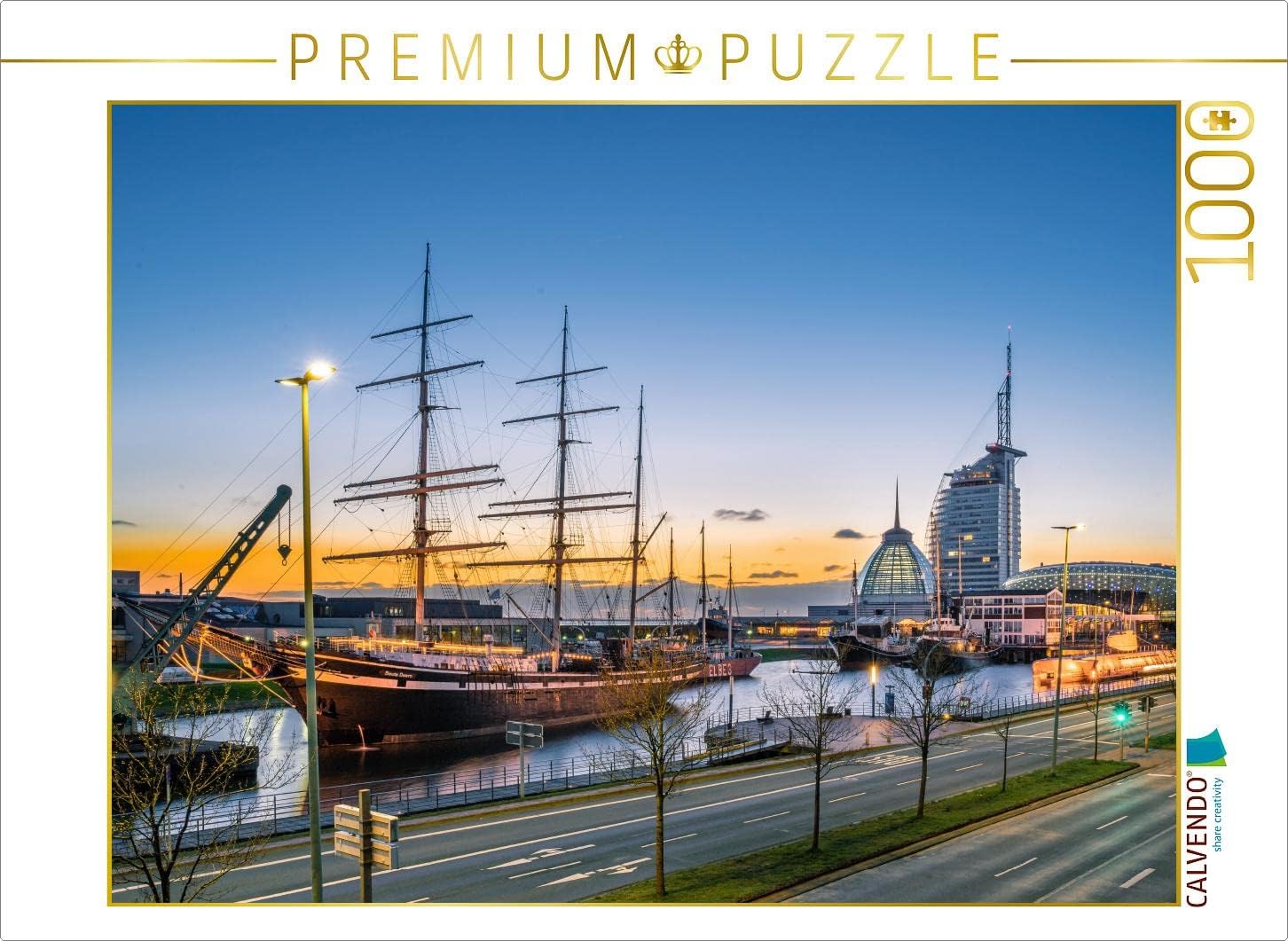 CALVENDO Puzzle Sonnenuntergang hinter den Bremerhavener Havenwelten 1000 Teile Lege-Grösse 64 x 48
