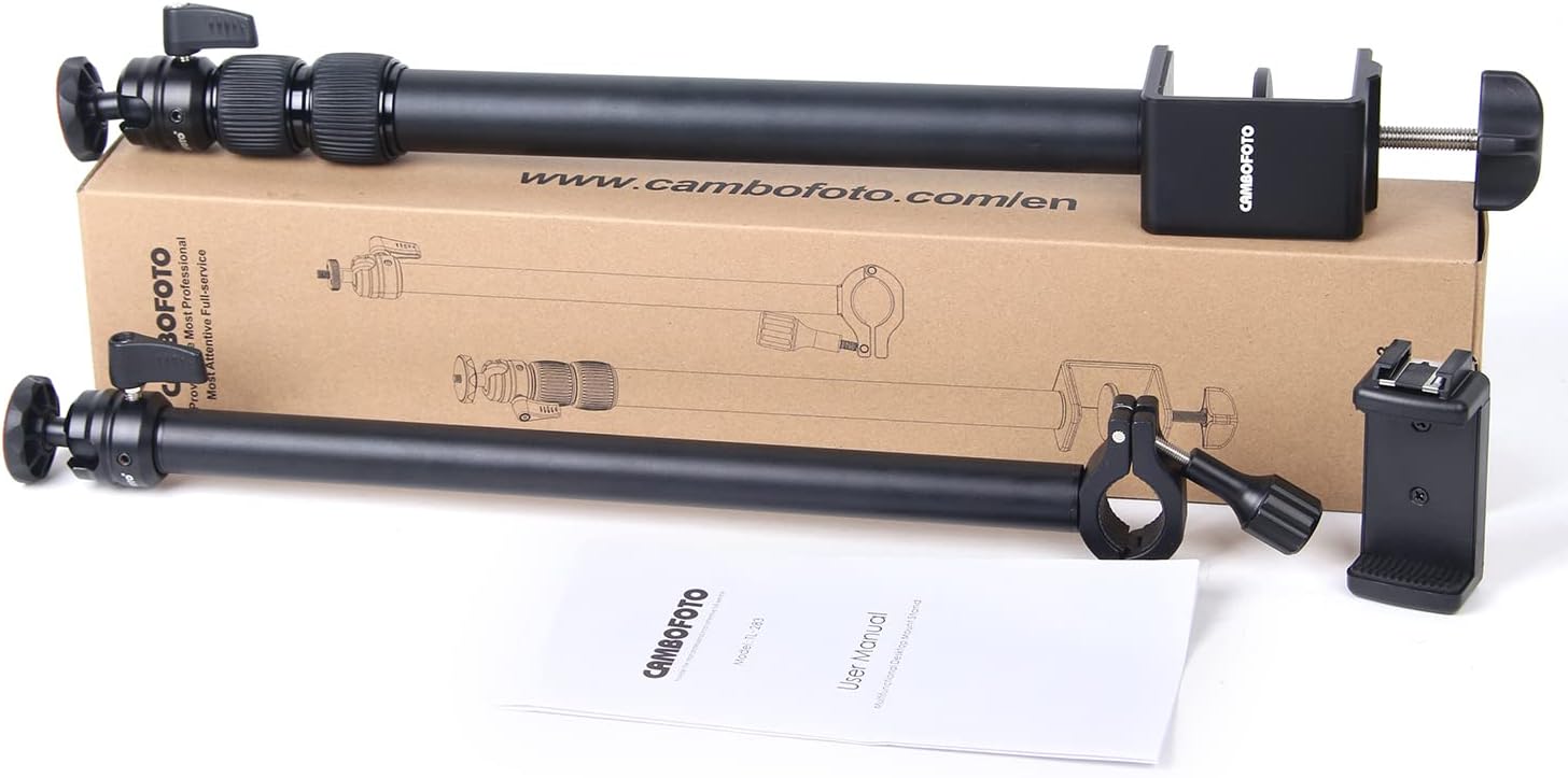 - Breite Anwendungen:Der multifunktionale Desktop-Ständer ist einfach zu installieren, spart Platz auf dem Schreibtisch und ist mit einem Telefonclip mit Blitzschuhmund ausgestattet, der mit den meisten Smartphones auf dem Markt kompatibel ist und sich