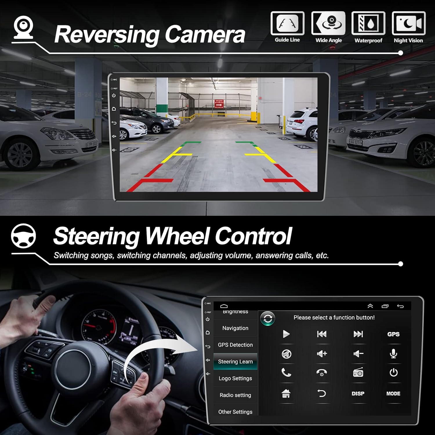 - 🏝️【Autoradio mit Rückfahrkamera】HD-Kamera mit 170 Grad weitem Blickwinkel, hoher Wasserfestigkeit und Nachtsicht, um bei jedem Wetter ein klares Bild zu erhalten. Die Leitstrahlkamera hilft Ihnen, schnell einzuparken und verhindert, dass Ihr