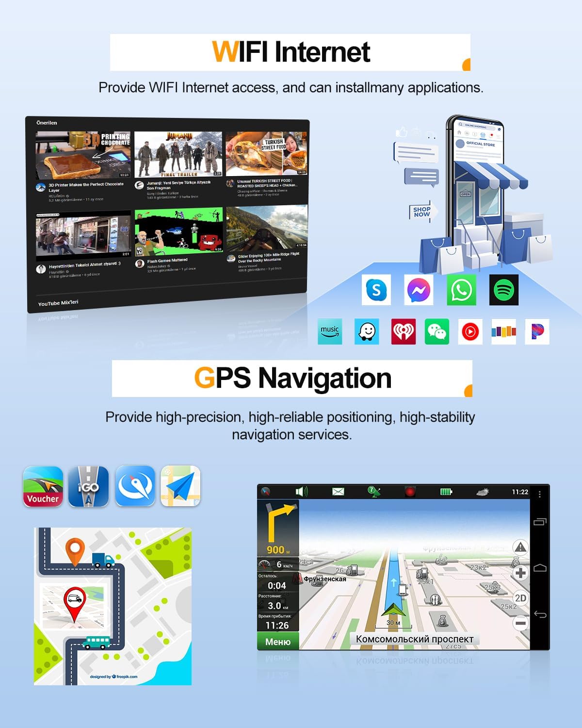 • 🗺️【Autoradio mit Navi und WiFi】Eingebauter GPS-Empfänger, unterstützt Online-Karten und Offline-Karten, erfüllt Ihre vielfältigen Bedürfnisse. Autoradio verbindet sich mit WiFi oder Hotspot, um im Internet zu surfen und verschiedene Apps