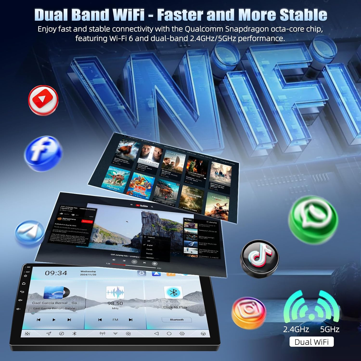 - 【Drahtlos Apple CarPlay & Android Auto & Dual WIFI】Das Autoradio verfügt über wireless Apple CarPlay und Android Auto. Über Bluetooth können Sie Ihr Smartphone bequem mit dem Radio verbinden. Nach der Verbindung können Sie einfach auf