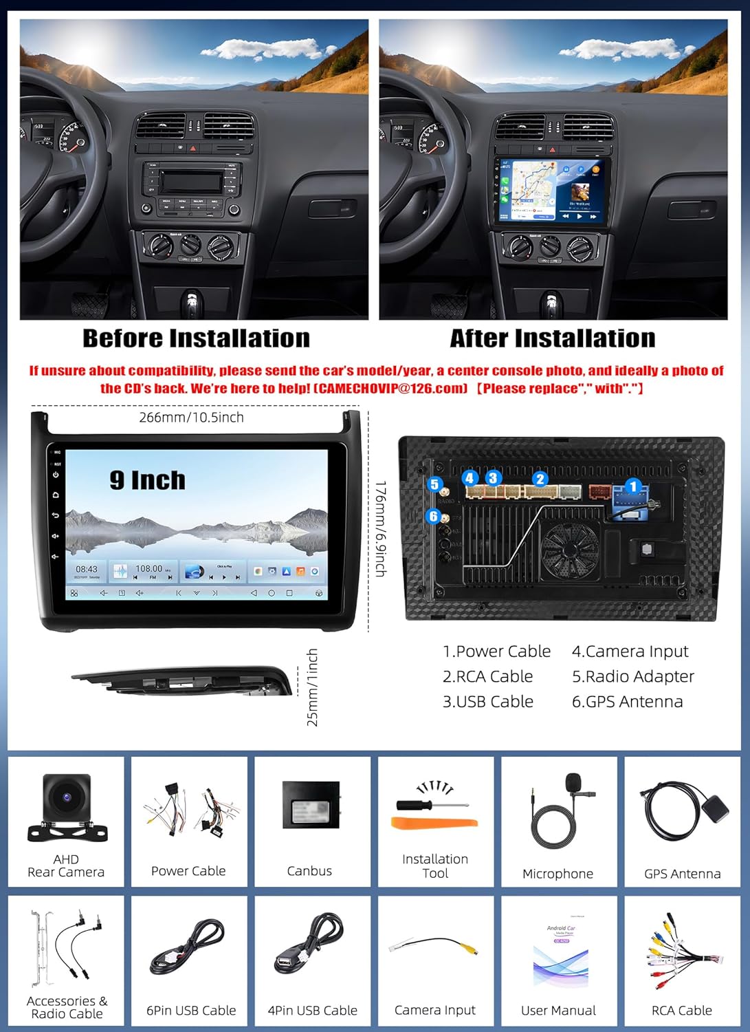 - 【Passende Modelle】 Autoradio mit Android 15, 4GB RAM+64GB ROM, 8-Core Chip. Geeignet für VW Polo 2011 2012 2013 2014 2015 2016.Hinweis: Wenn Sie nicht wissen, ob es ein perfekter Ersatz für Ihr Radio ist, senden Sie uns bitte ein Foto der