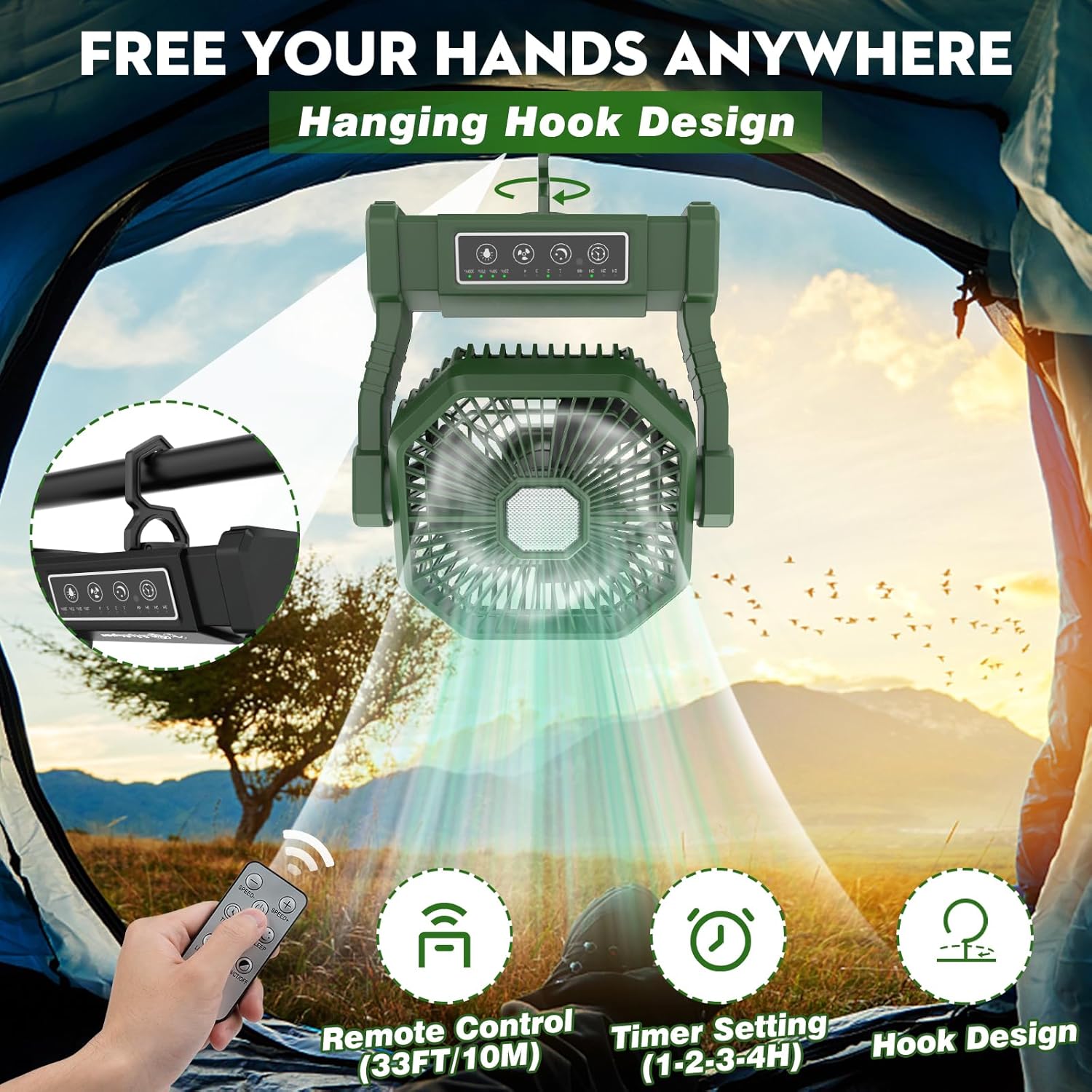 - 💦【10000 mAh Akku】Machen Sie sich immer noch Sorgen, dass Ihnen beim Camping der Strom ausgeht und Sie nicht kühl genug sind? Dieser wiederaufladbare Camping Ventilator hält bis zu 30 Stunden bei natürlicher Luft (1 speed) ohne Widerstandsangst!