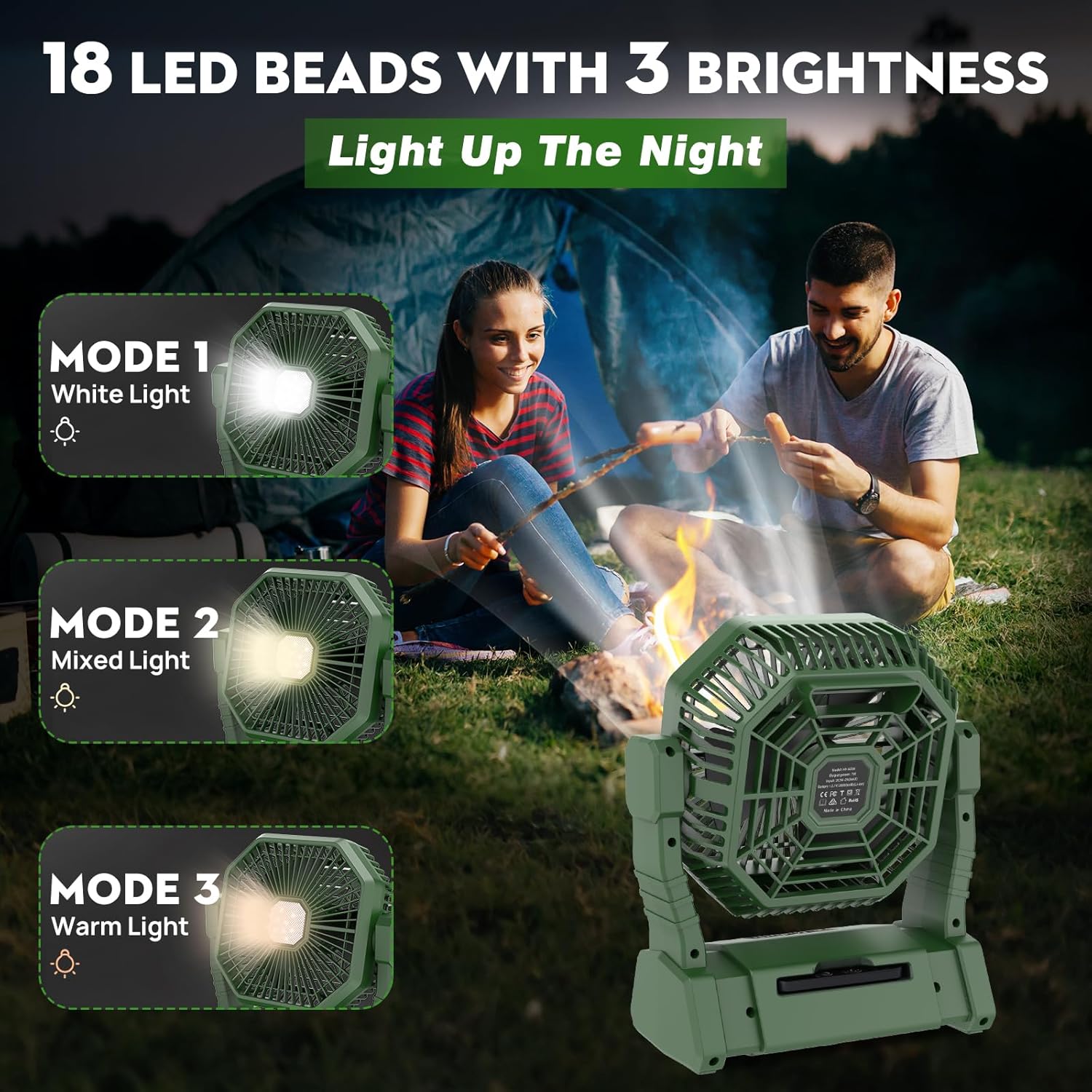 - 💦【Superhelles LED Licht & Fernbedienungsfunktion】Der Camping ventilator fan ist mit LED Campinglicht und praktischer Fernbedienungsfunktion ausgestattet. Die USB Tischventilator LED Laterne besteht aus 18 LED Lichtperlen mit 3
