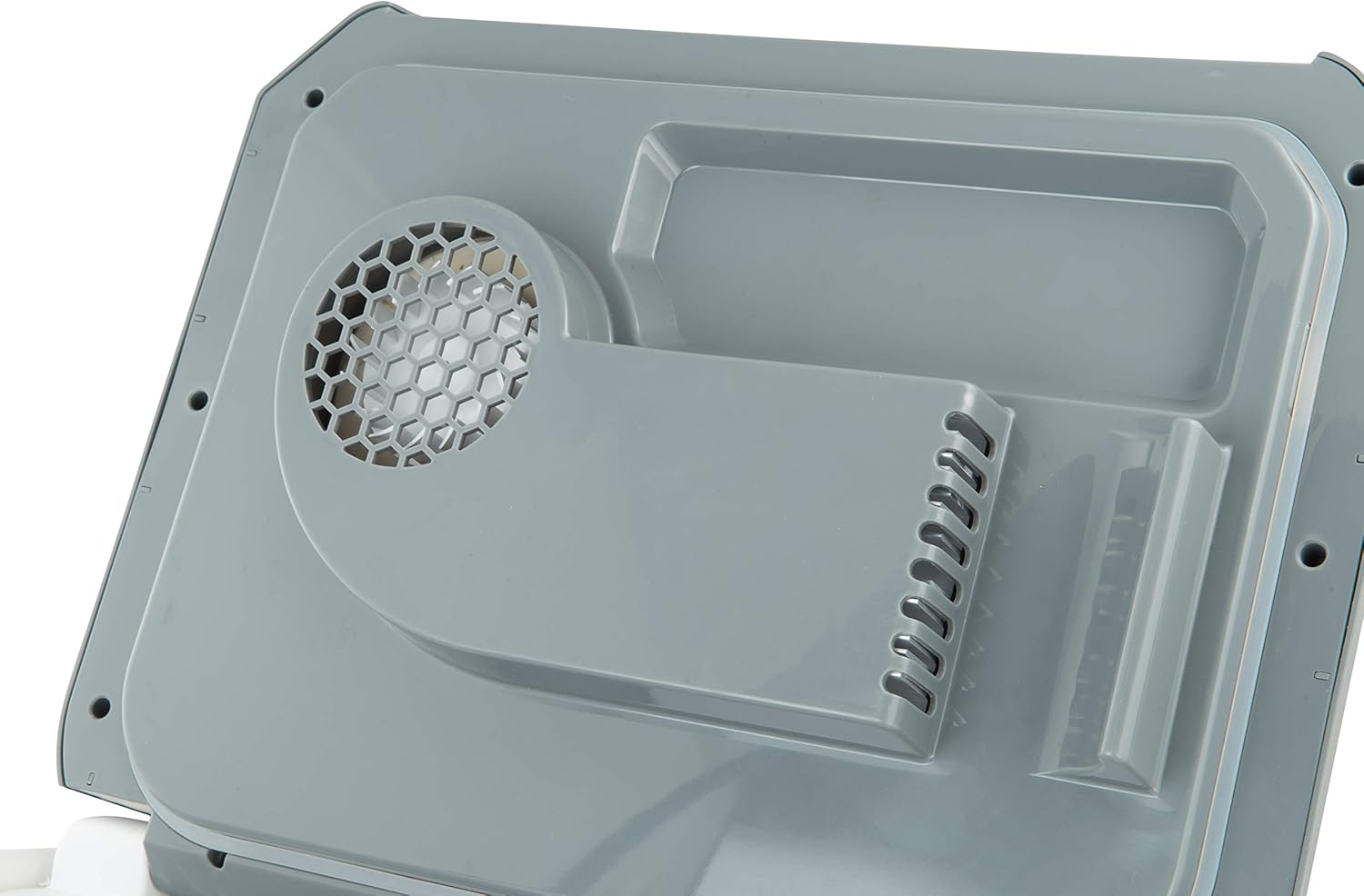 - Ausstattung: stabiler, beweglicher Griff; Klappdeckel mit Griffmulde zum einfachen Öffnen; sehr leiser Ventilator (39 dB)