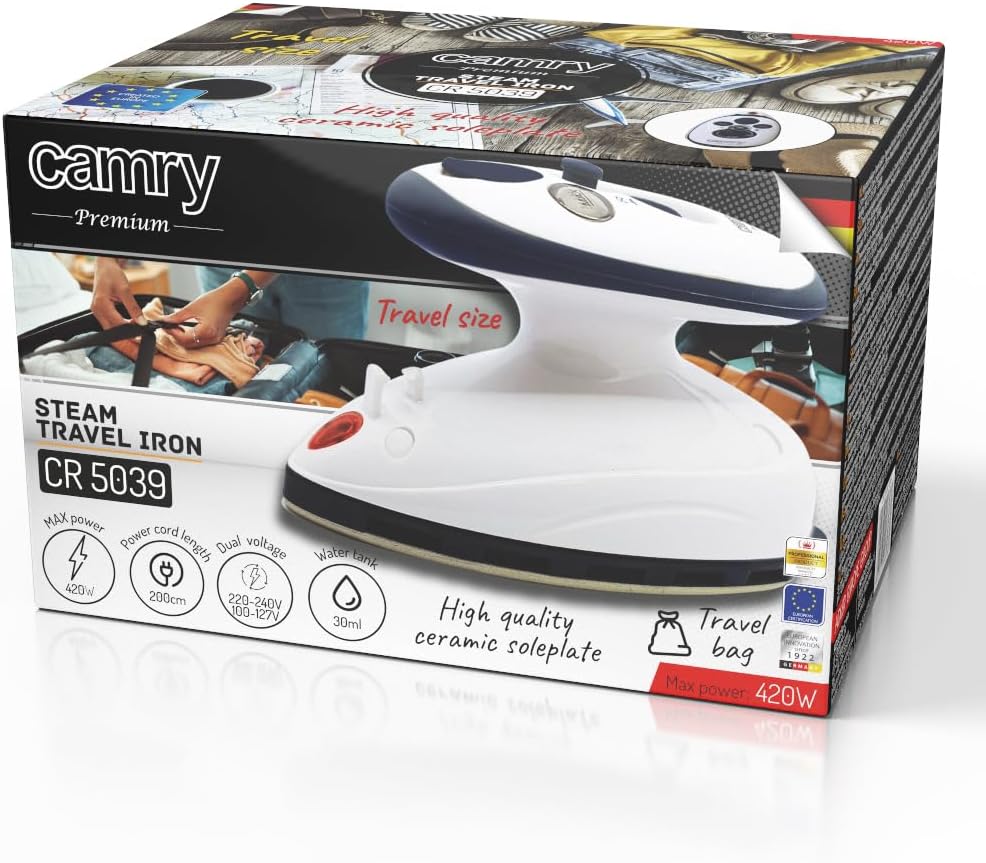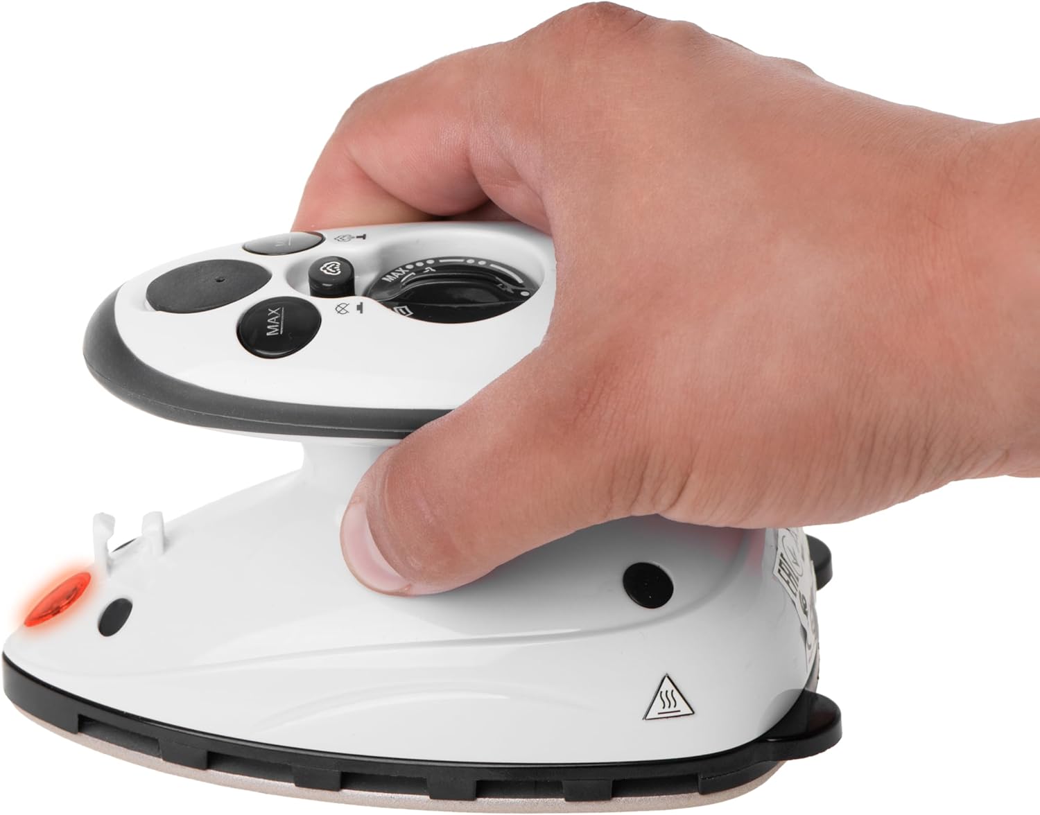 - Schick und funktional – Das elegante Mini Iron in weiss-blauem Design kombiniert Stil mit Leistung – unverzichtbar für jeden, der auf Reisen perfekt gepflegte Kleidung schätzt
