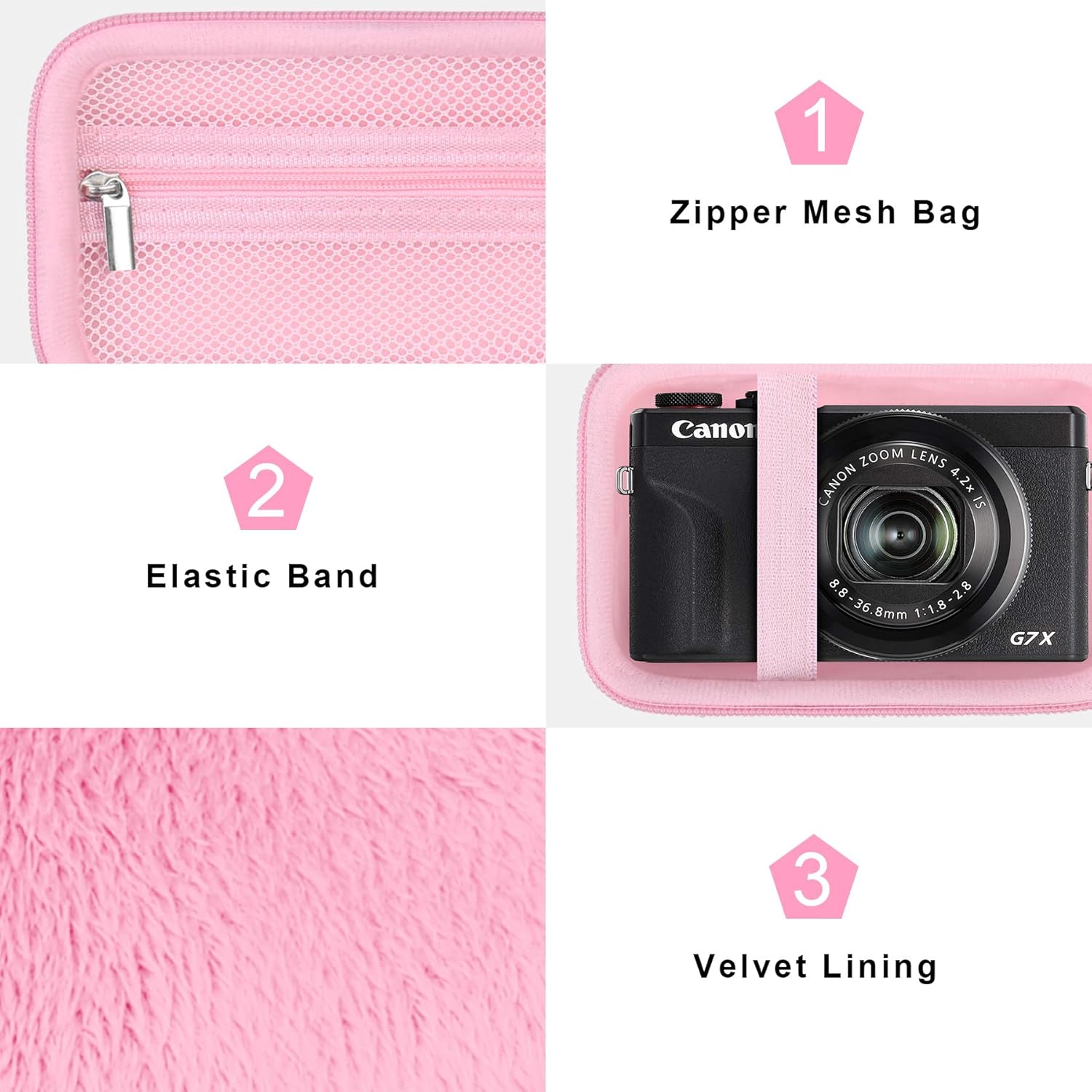 - Digitalkameraetui aus kratzfestem Gewebe und hochwertiger strapazierfähiger EVA-Hülle hält Ihre PowerShot G7 X Mark II Kamera geschützt. Weiches Samt-Innenfutter hält Ihre Point-and-Shoot-Kamera und kleines Zubehör frei von Kratzern.