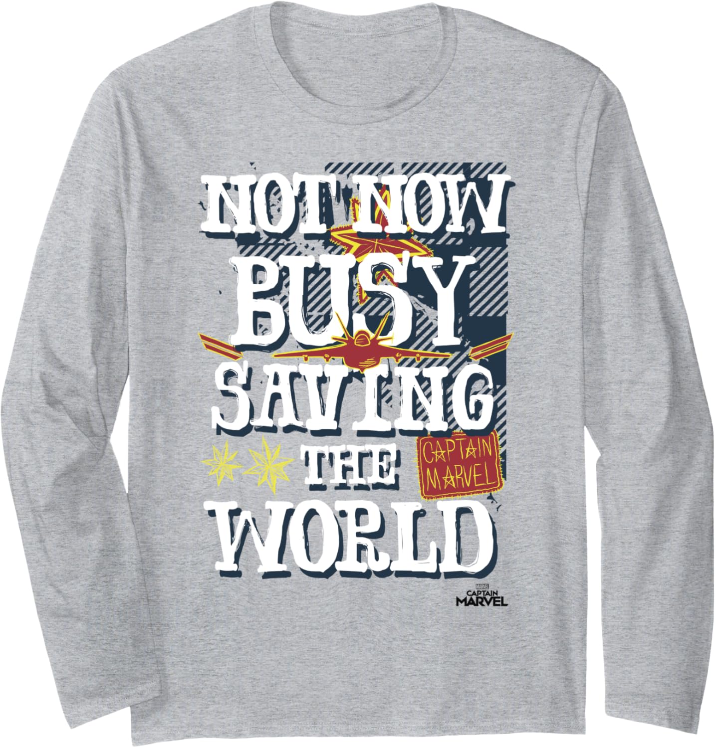 Captain Marvel Not Now Busy Saving The World Poster Langarmshirt