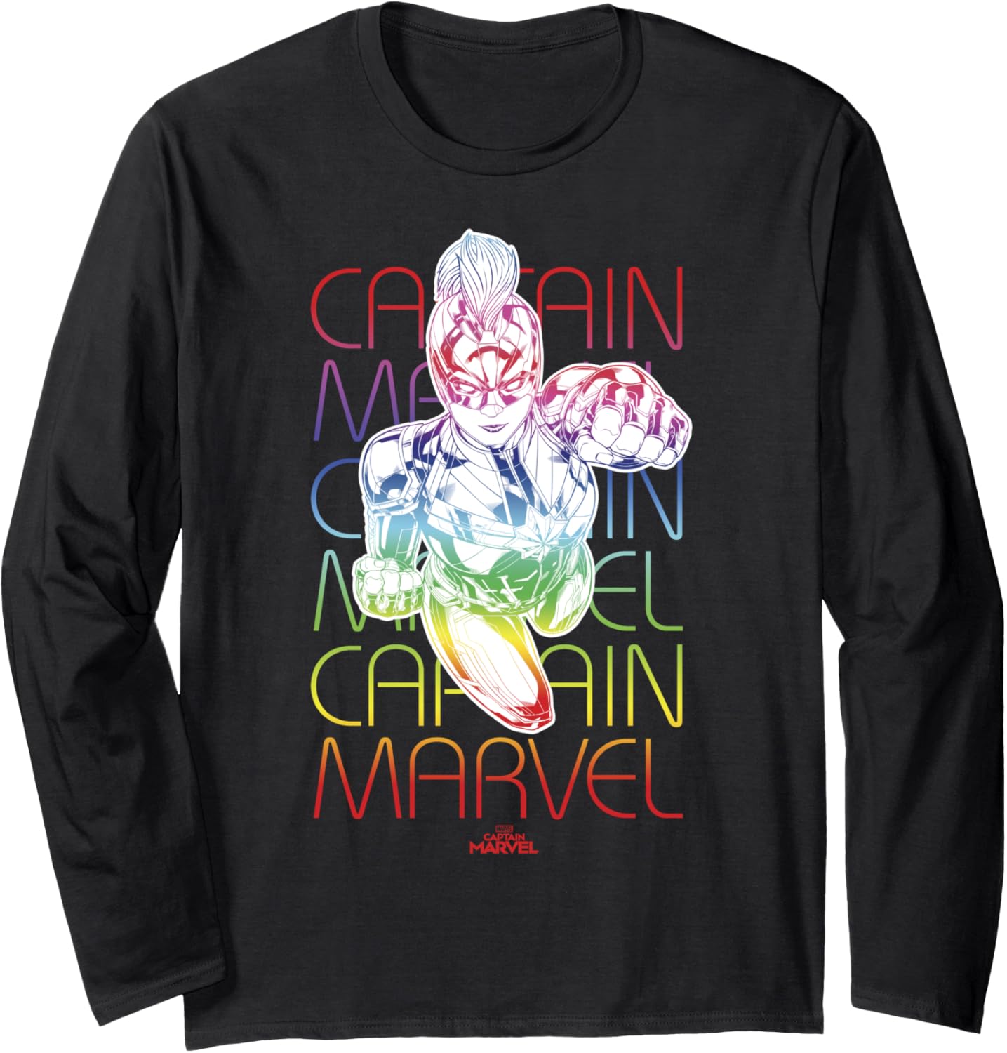 Captain Marvel Rainbow Text Stack Portrait Langarmshirt