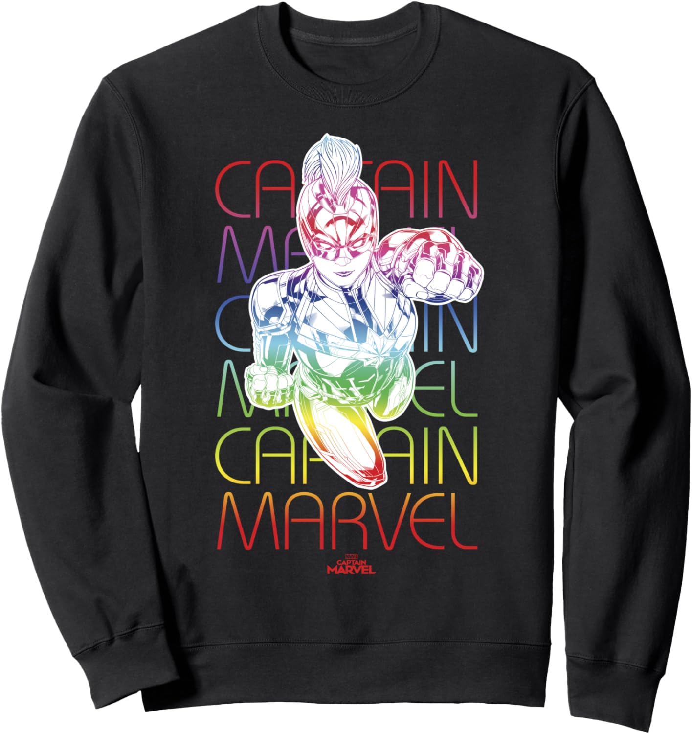 Captain Marvel Rainbow Text Stack Portrait Sweatshirt