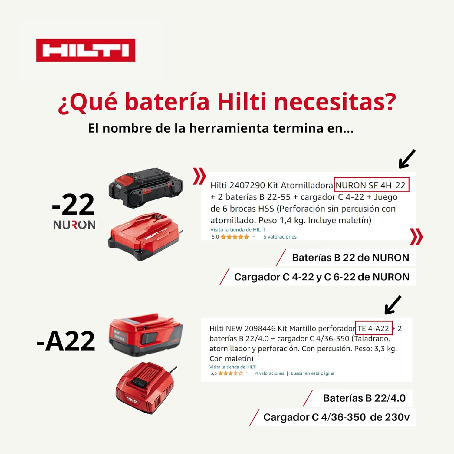 - Laden Sie alle 12V Lithium-Ionen-Akkus (mit Adapter), 14V, 22V und 36V von Hilti in ca. 30 Minuten auf. Das schnell belüftete Ladegerät ermöglicht eine sichere Aufladung mit 230 V Spannung