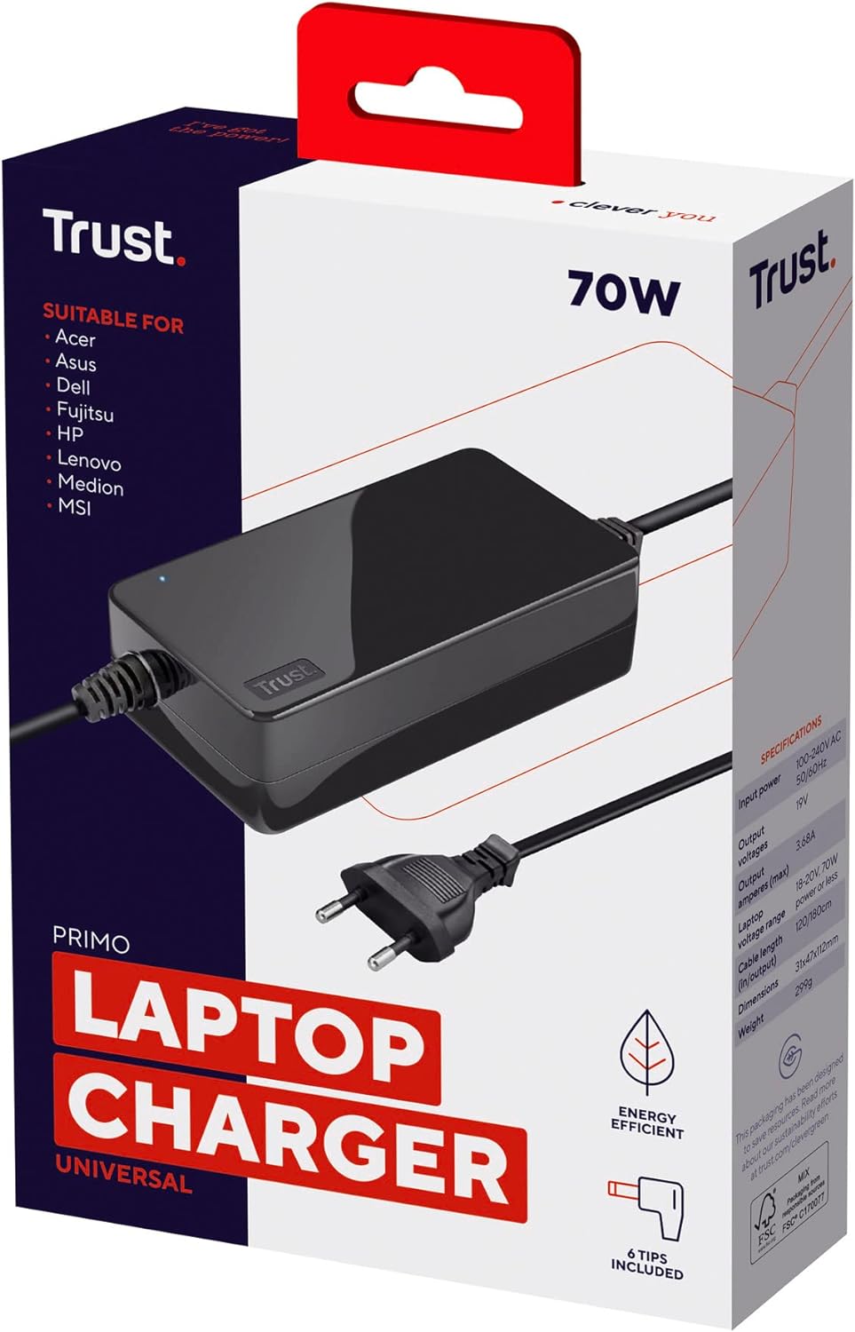 - Haltbares, zuverlässiges und energieeffizientes Design. Kompatibel mit Laptops, die 18-20 Volt und max. 70 Watt Leistung benötigen.
