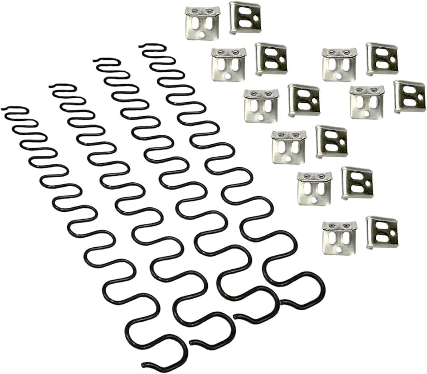 - The S-shaped clip has 5 separate holes, screws and nails can be used to fix the spring to the frame, and 5 separate holes allow more capture points to ensure that the spring does not tear off the frame.