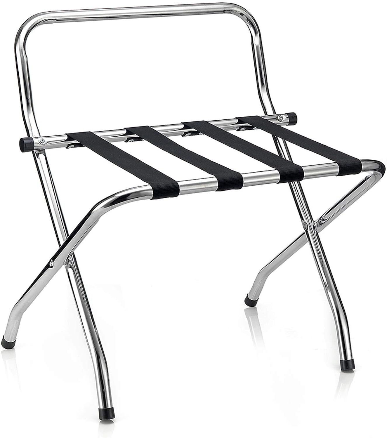 - Das stabile Gestell des Kofferständers besteht aus Metall und erstrahlt im verchromten Look