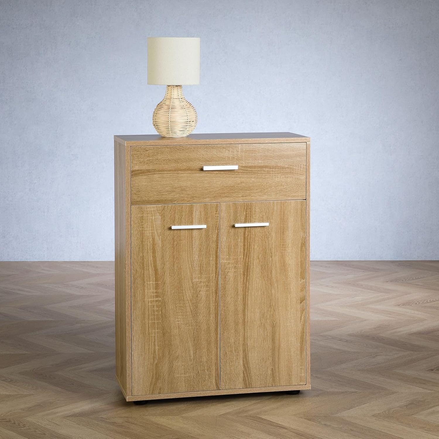- Durch die Schublade und die 2 Türen, kann die Anrichte auch ohne Probleme als Mehrzweckschrank genutzt werden.