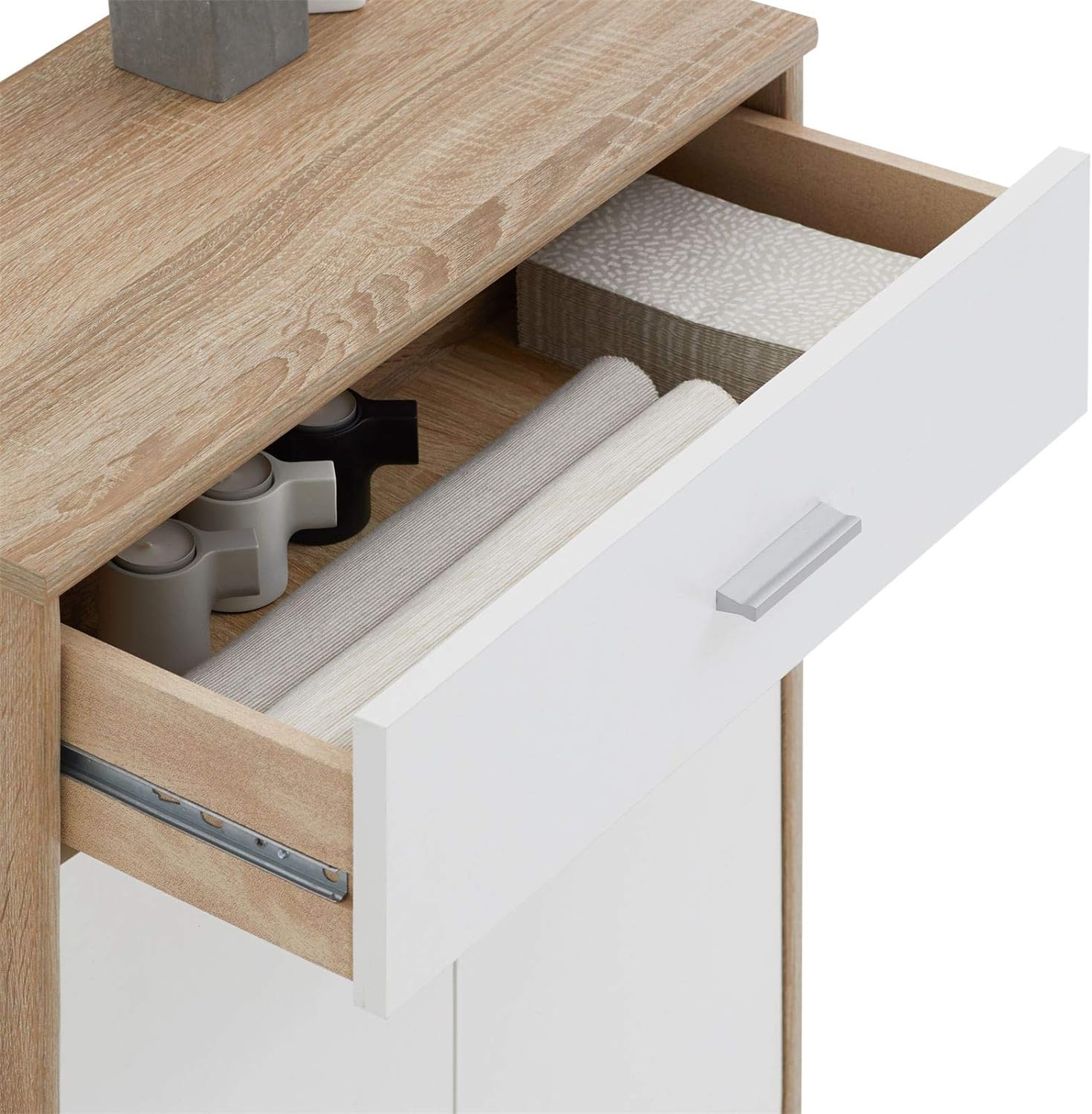 CARO-Möbel Kommode Sideboard Schrank Tommy in Sonoma Eiche/weiss, Anrichte mit 1 Schublade und 2 Tür