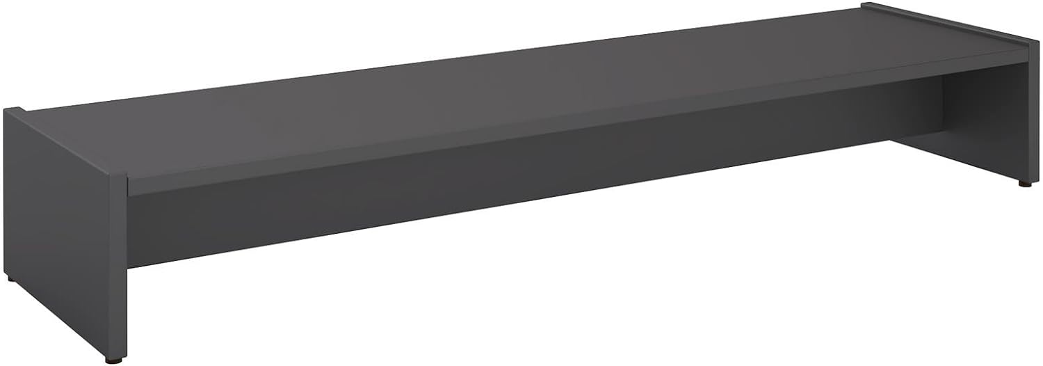 - Der Bildschirmaufsatz ist aus einer melaminharzbeschichteten Spanplatte gefertigt und in grau foliert