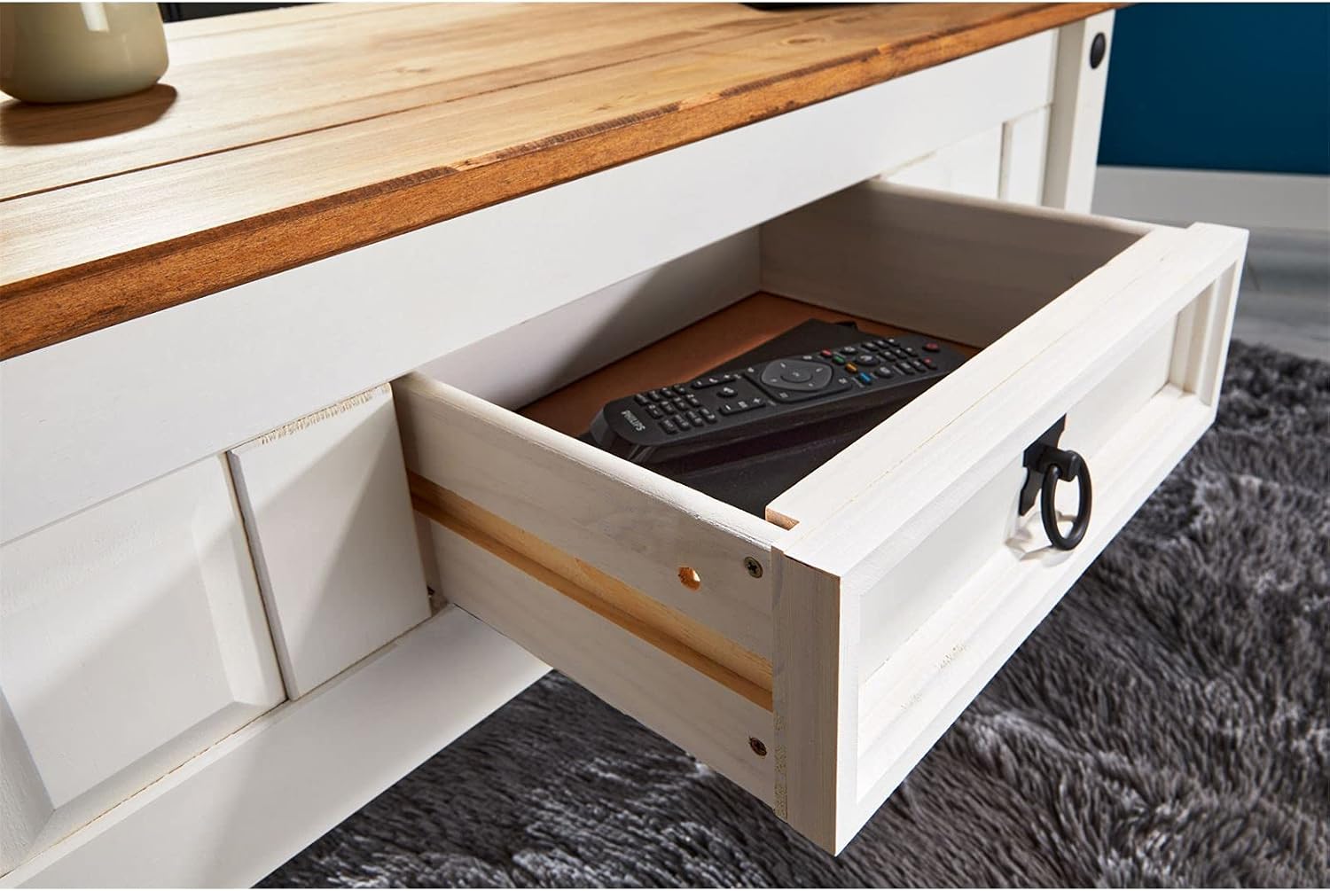 - Auf der grossen Tischplatte können Sie Ihre Zeitschriften ablegen, in der Schublade zum Beispiel die Fernbedienungen staubfrei aufbewahren