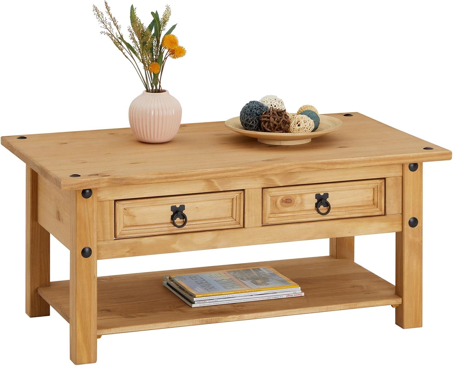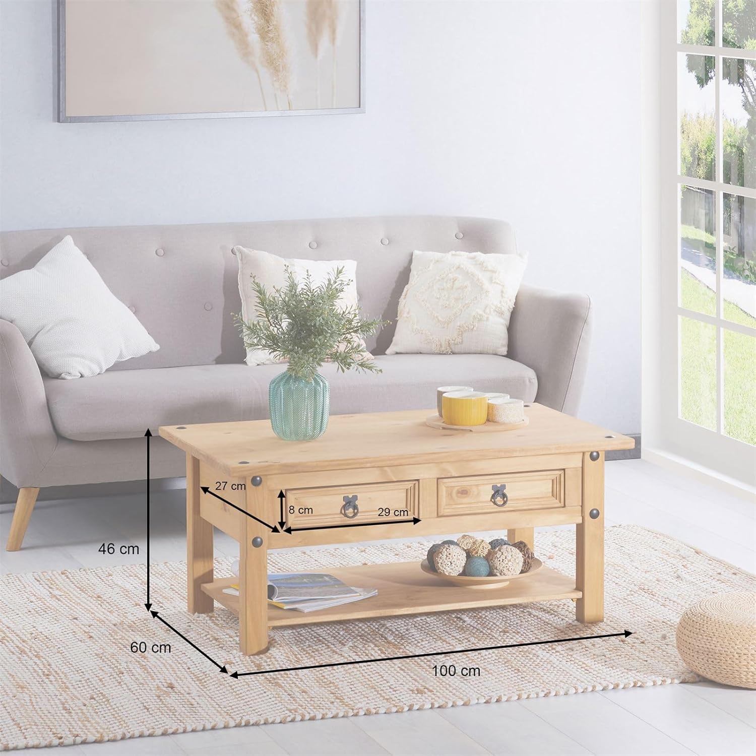 - Natürlichkeit: Der Sofatisch wurde aus massiven Kiefernholz hergestellt und wurde gewachst und gebeizt, dadurch bleibt die schöne Holzmaserung sichtbar