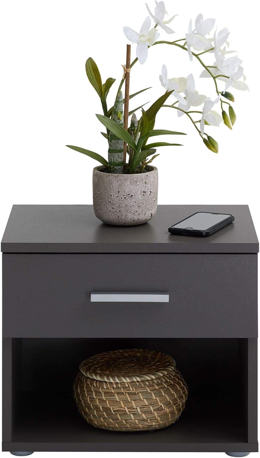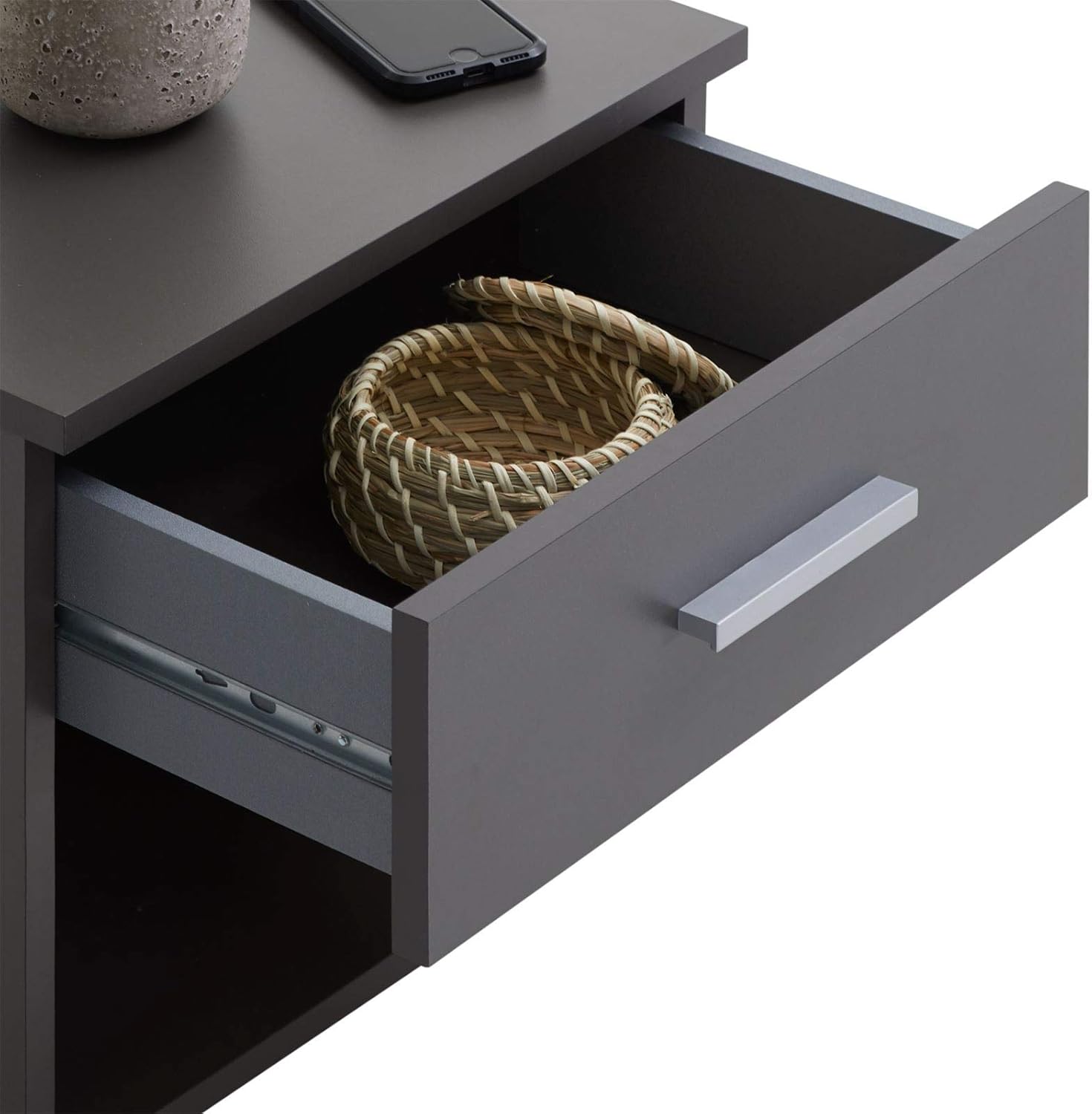 CARO-Möbel Nachttisch Nachtschrank Nachtkommode Mary anthrazit grau, 42 x 38 x 30 cm, mit Schublade