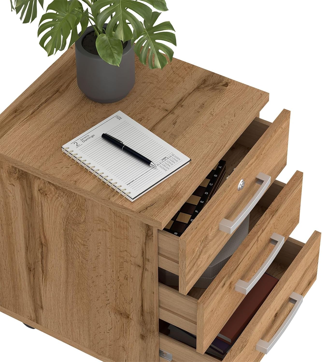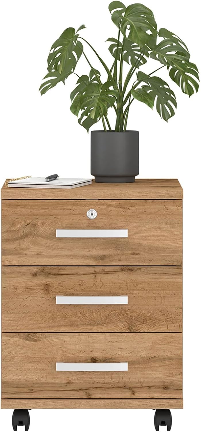 CARO-Möbel Rollcontainer Bürocontainer Büroschrank Vancouver, in Wildeiche, abschliessbar mit 3 Schu