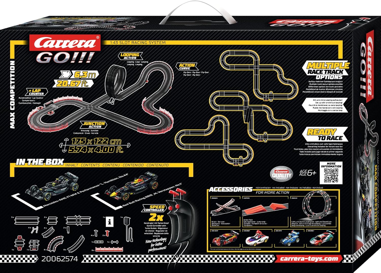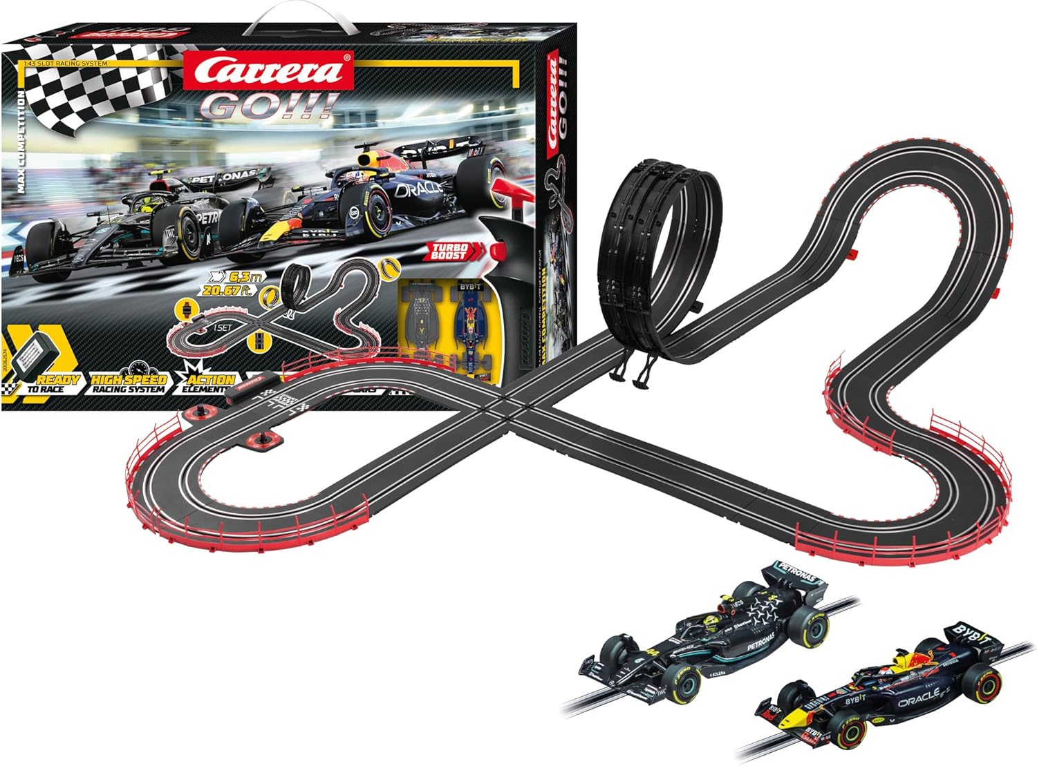 - SPANNUNG UND ACTION: Das Carrera GO!!! Set "Max Competition" verspricht Spannung und Action für Rennsport-Enthusiasten jeden Alters. Fordern Sie Freunde und Familie zu packenden Rennen heraus und erleben Sie den Nervenkitzel des Formel-1-Rennens.