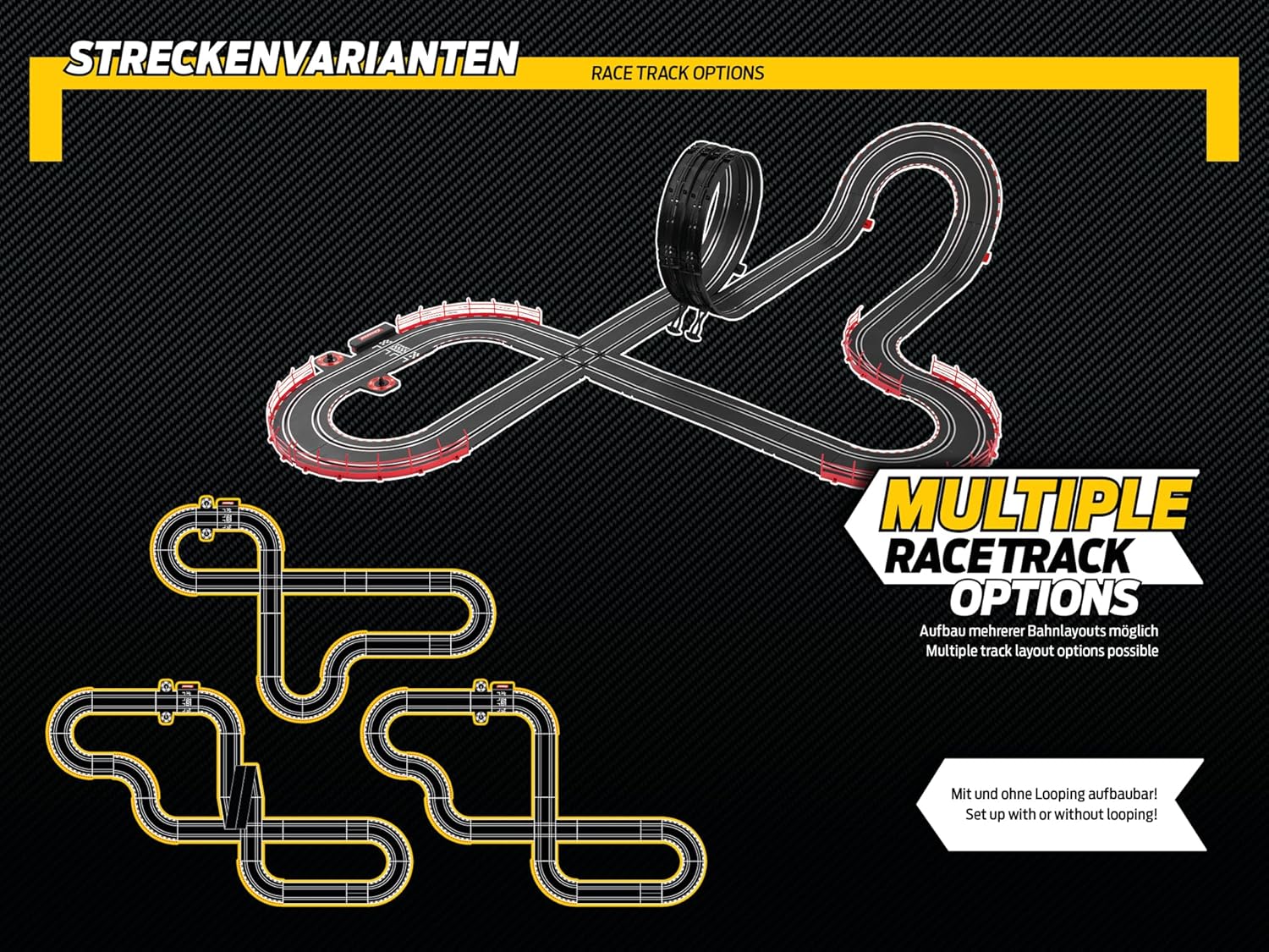 - 6,3 METER RENNSTRECKE: Die Rennstrecke erstreckt sich über beeindruckende 6,3 Meter und bietet Geraden und eine Kreuzung. Hier haben Sie genügend Platz für atemberaubende Überholmanöver und packende Rennen.