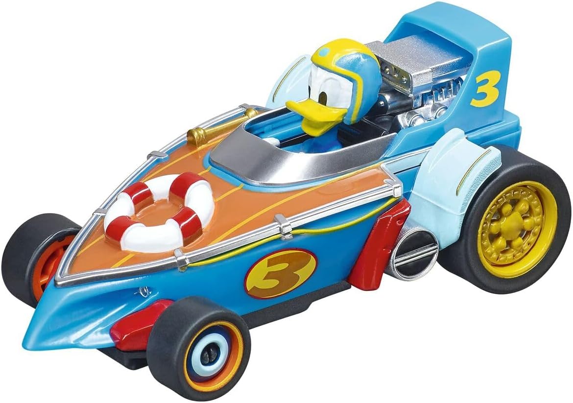 • MICKEYS FUN RACE - Fahre mit Mickey Mouse und Donald Duck um die Wette! Dieses spassige Carrera FIRST-Set enthält eine 2,4 Meter lange Spielbahn, ergonomisch geformte Handregler und coole Disney-Figuren.