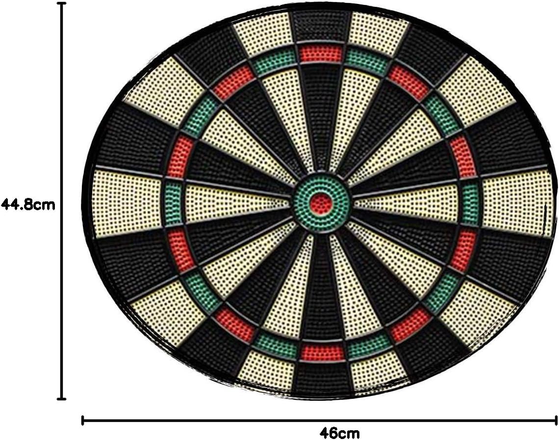 - TECHNISCHE DETAILS: Abmessungen Elektronik Dartscheibe (LxBxT): 46x44,8x3,8 cm | Gewicht: 1,32 kg | Zubehör: inklusive Plastiktüren, 6 Softdarts, extra Tips