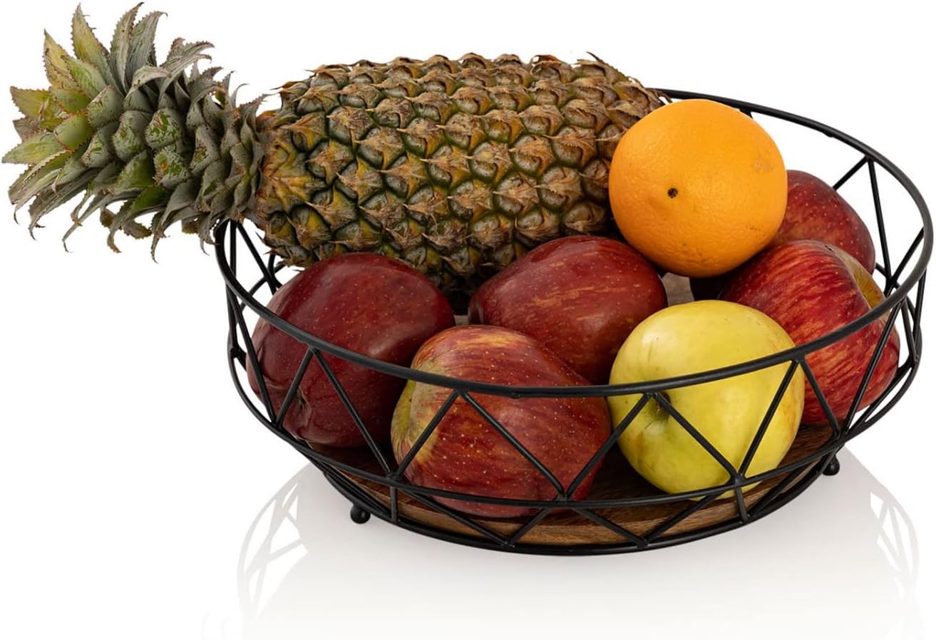 • Schöne Obstschalen aus edler Drahtstruktur und Massivholzboden Ø 28 x H 10 cm. Jetzt bei Casamia entdecken.