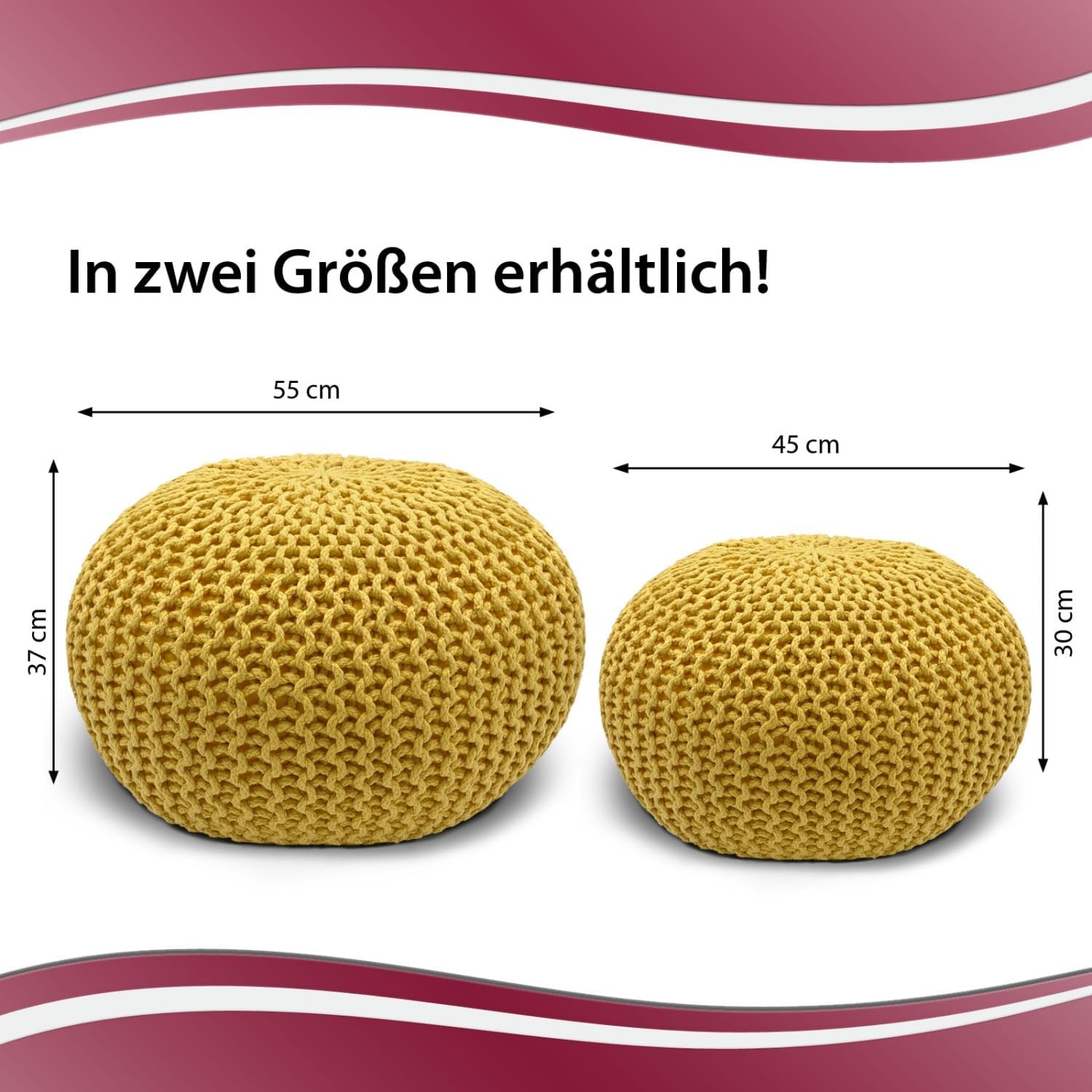 • Komfortabel: Der Pouf ist leicht und formstabil und du kannst zwischen 2 Grössen (ø 45 u. 55 cm) wählen - je nachdem wie viel Platz du benötigst.