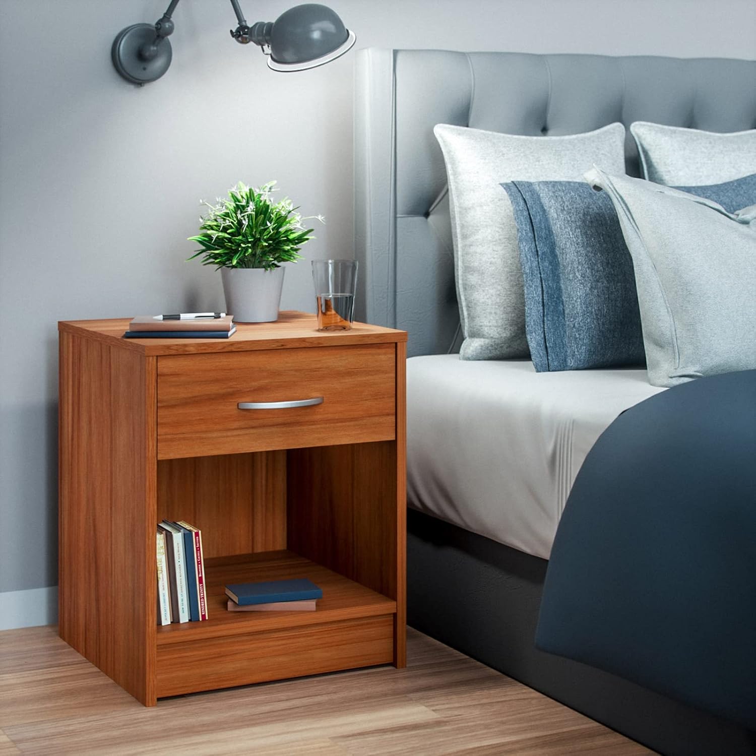 - ROBUSTES MATERIAL: Der Nachttisch besteht aus strapazierfähigem, stabilem MDF, ist bis 75kg belastbar und besonders langlebig. Die Oberfläche ist pflegeleicht und abwischbar. Für einen sicheren Stand kann der Nachtkasten an der Wand befestigt werden.