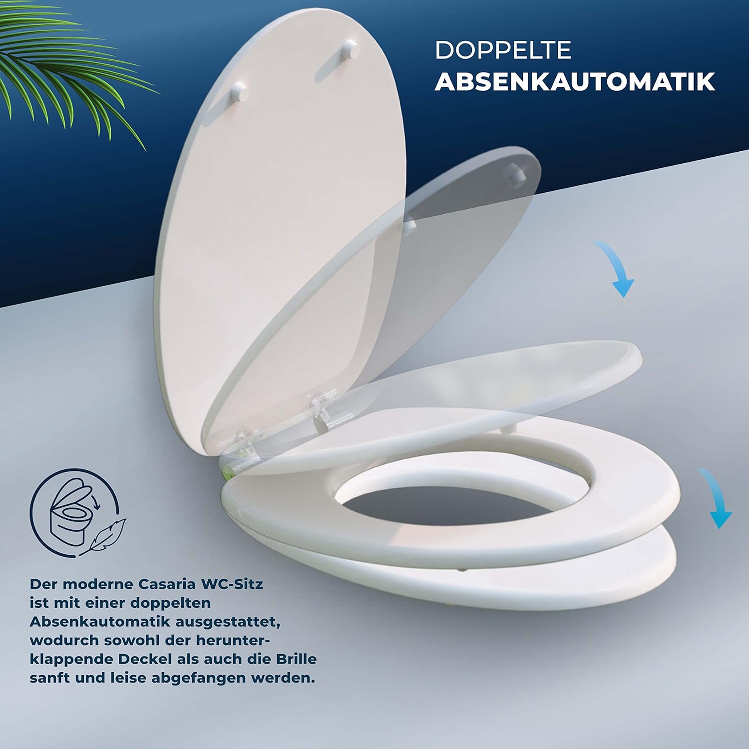 - DOPPELTE ABSENKAUTOMATIK: Herabfallende Klodeckel waren gestern! Der moderne CASARIA Holz WC-Sitz ist mit einer doppelten Absenkautomatik ausgestattet, wodurch sowohl der herunterklappende Deckel als auch die Brille sanft und leise abgefangen werden.